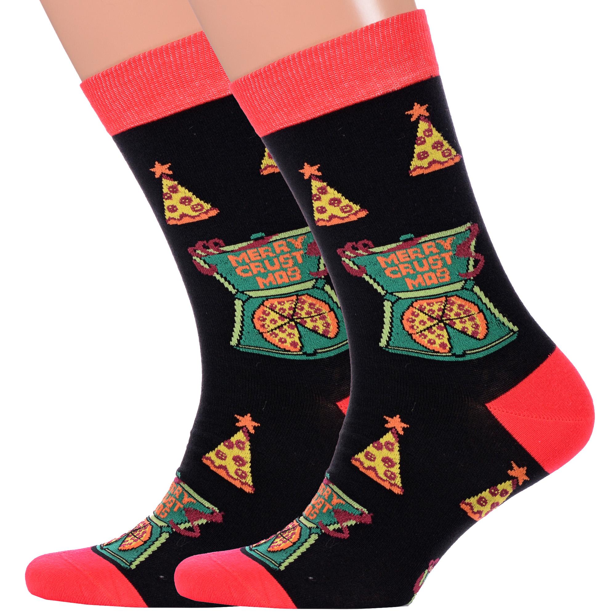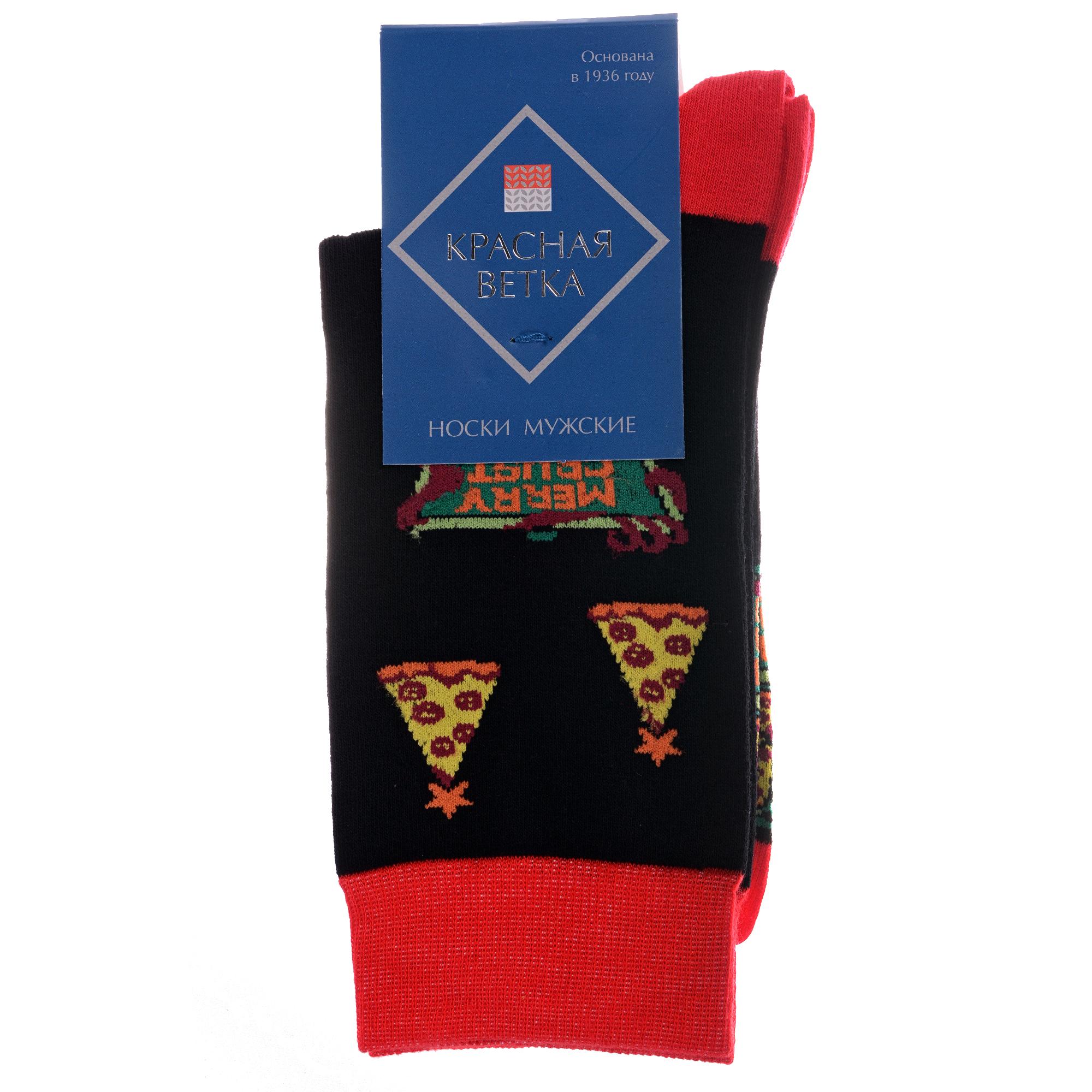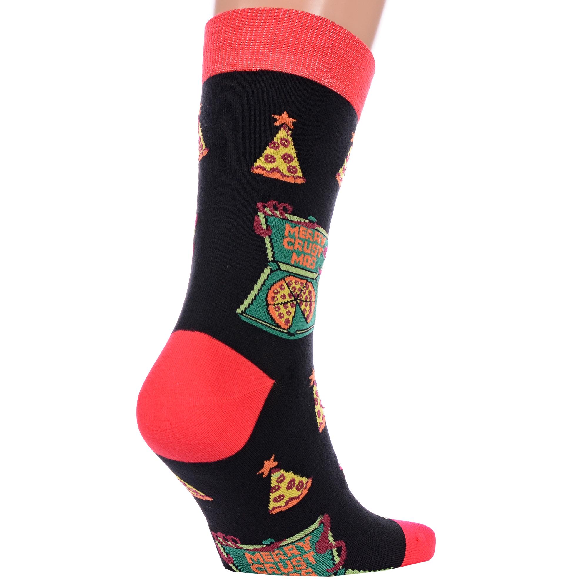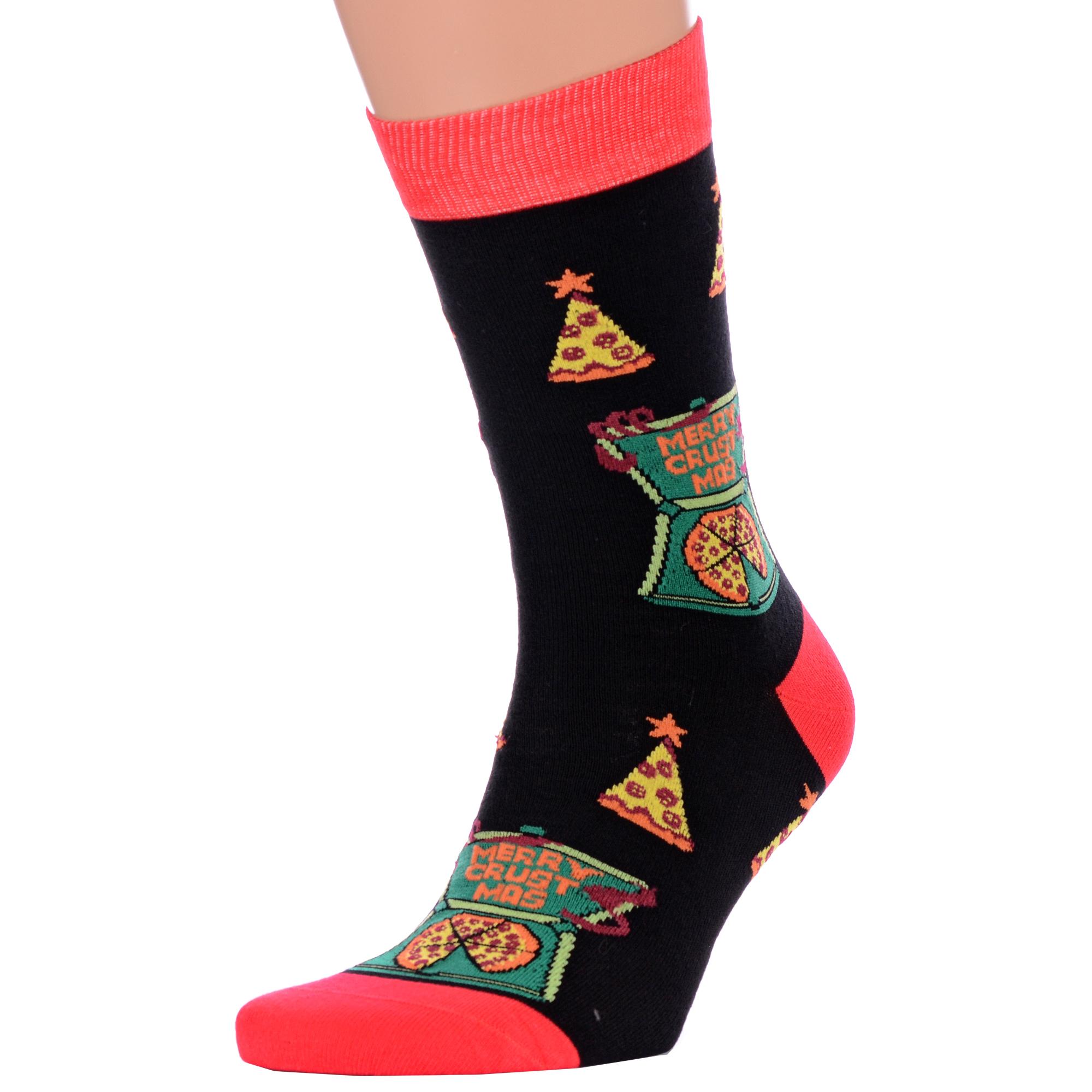 Комплект мужских носков из 2 пар, круглогодичные, средней длины, цвет черный, повседневные, возможно бесшовные, принт (рисунок): новый год, надписи, контрастные пятка/мысок/резинка, вкусности, с узором, крупные контрастные рисунки, состав: 51% хлопок, 23% полиамид, 21% полипропилен, 5% эластан, арт. 2-С-1370. Производитель «КРАСНАЯ ВЕТКА» Россия под брендом «Красная ветка».