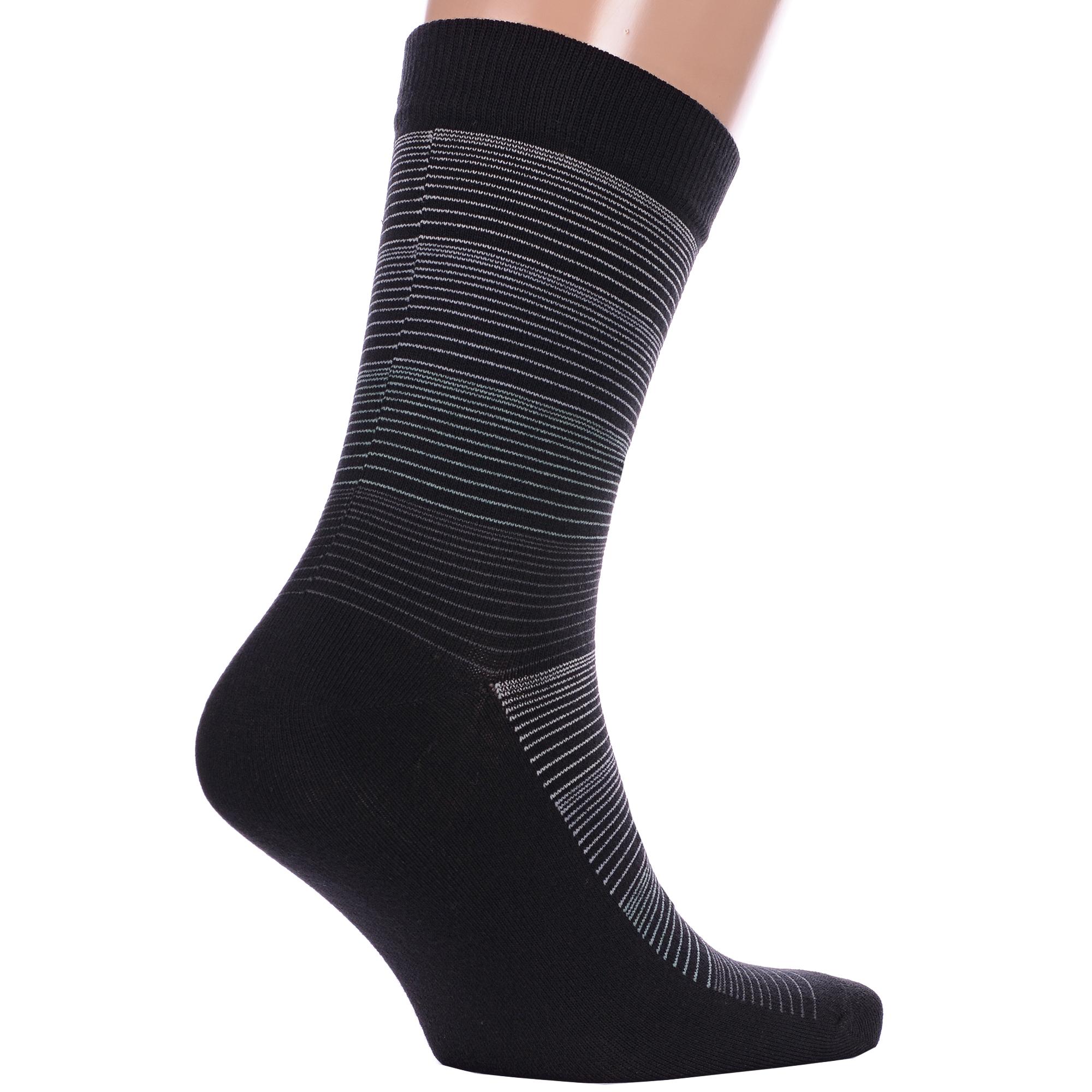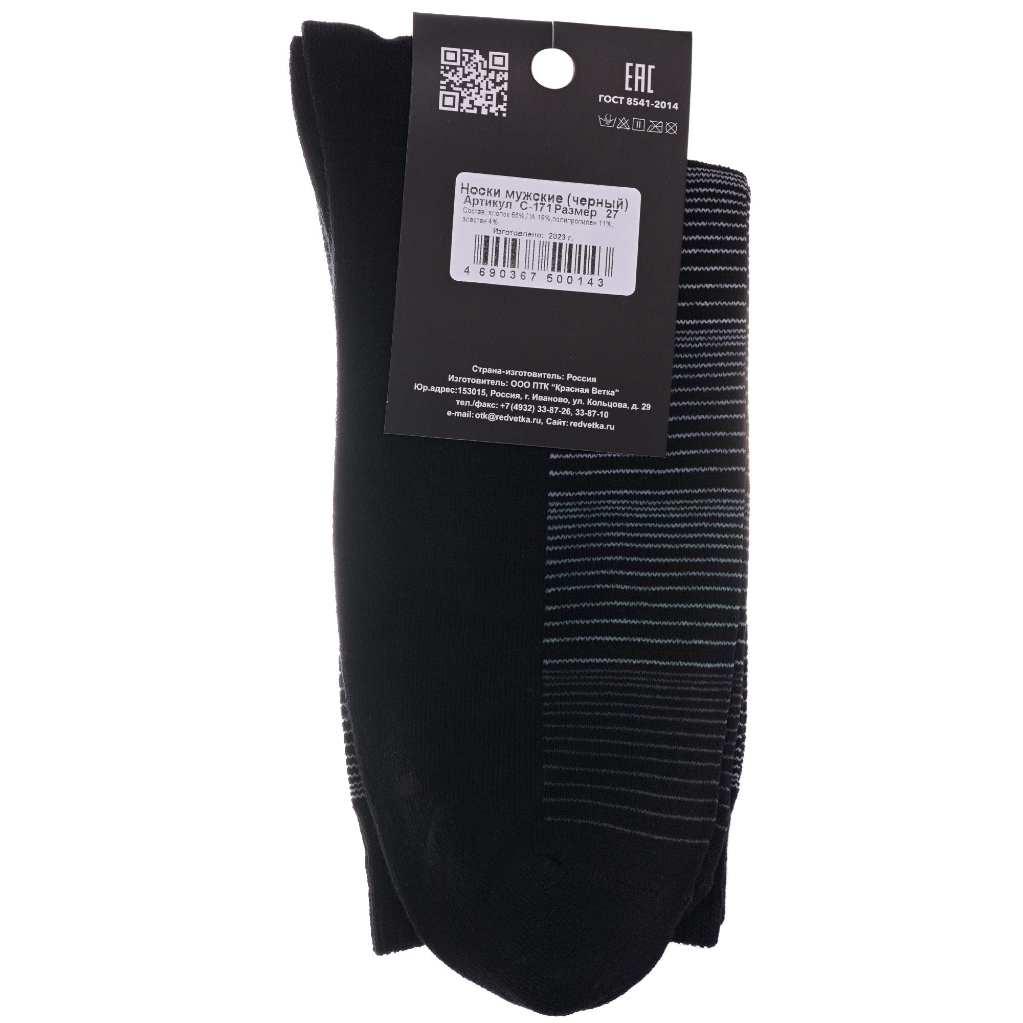 Комплект мужских носков из 2 пар, круглогодичные, средней длины, цвет черный, классические, возможно бесшовные, принт (рисунок): полоски, с узором, состав: 66% хлопок, 19% полиамид, 11% полипропилен, 4% эластан, арт. 2-С-171. Производитель «КРАСНАЯ ВЕТКА» Россия под брендом «Красная ветка».