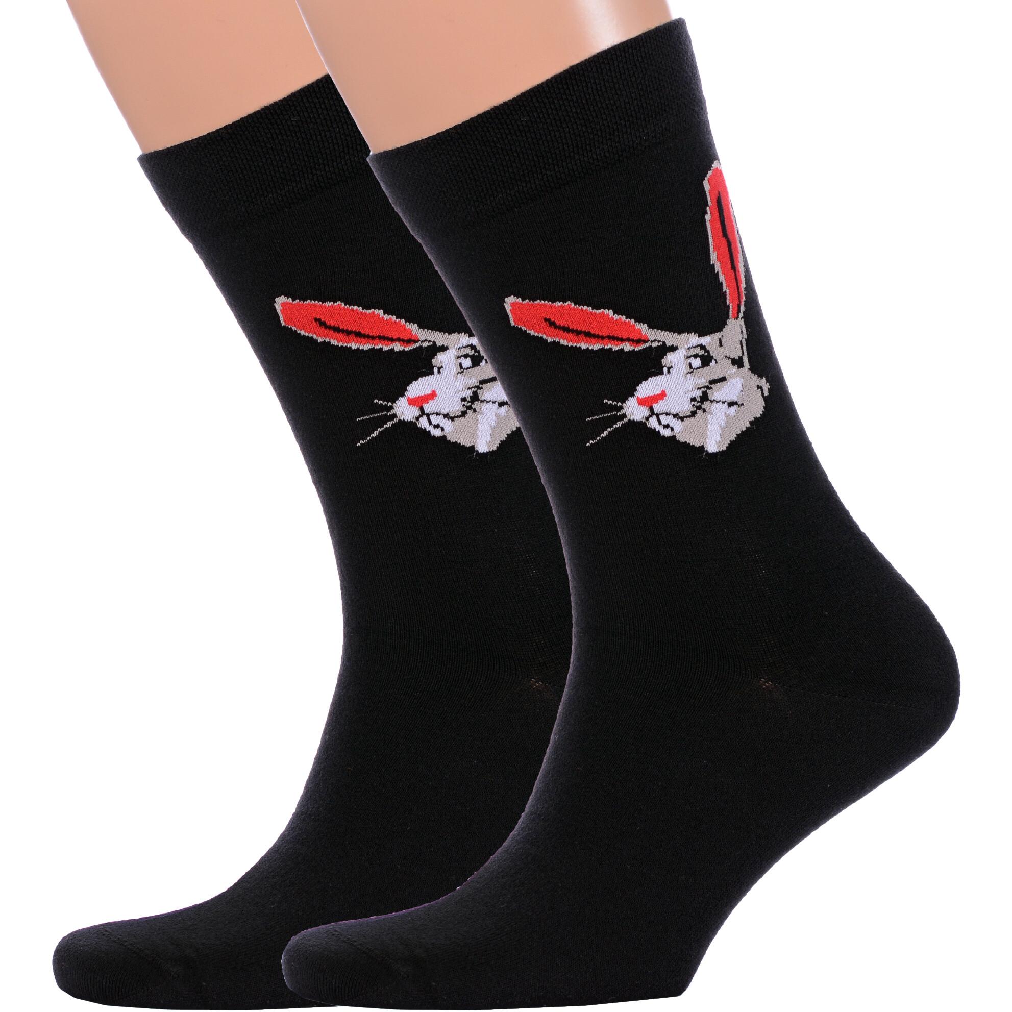 Комплект мужских носков из 2 пар, круглогодичные, средней длины, цвет черный, повседневные, возможно бесшовные, принт (рисунок): животные, с узором, состав: 68% хлопок, 24% полиамид, 4% полипропилен, 4% эластан, арт. 2-С-2057. Производитель «КРАСНАЯ ВЕТКА» Россия под брендом «Красная ветка».