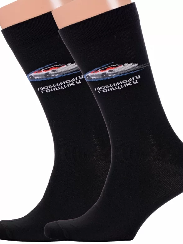 Комплект мужских носков из 2 пар, круглогодичные, средней длины, цвет черный, повседневные, возможно бесшовные, принт (рисунок): транспорт, надписи, с узором, состав: 73% хлопок, 21% полиамид, 4% эластан, 2% полипропилен, арт. 2-С-2071. Производитель «КРАСНАЯ ВЕТКА» Россия под брендом «Красная ветка».