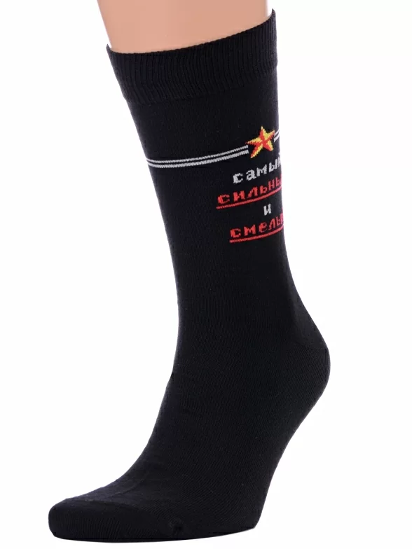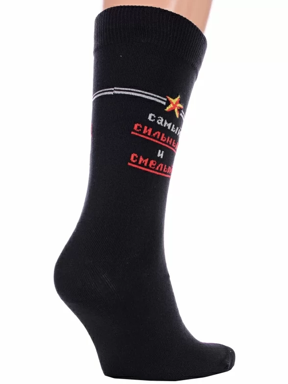 Комплект мужских носков из 2 пар, круглогодичные, средней длины, цвет черный, повседневные, возможно бесшовные, принт (рисунок): надписи, с узором, состав: 80% хлопок, 18% полиамид, 2% эластан (рисунок из полипропилена), арт. 2-С-355. Производитель «КРАСНАЯ ВЕТКА» Россия под брендом «Красная ветка».
