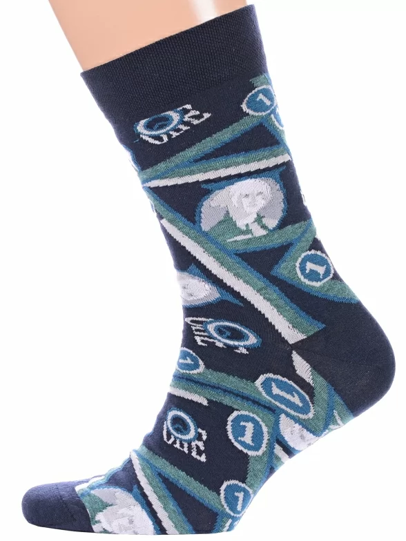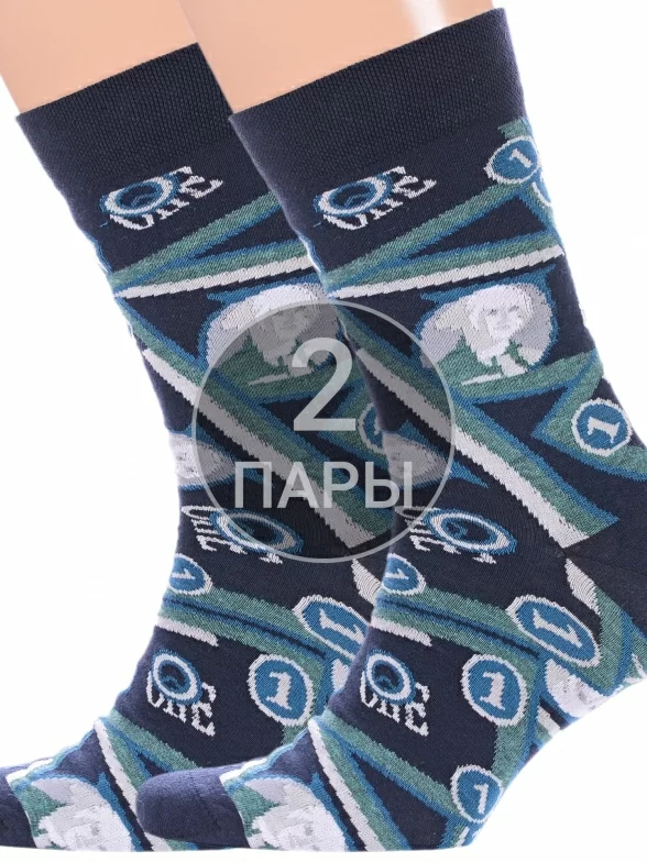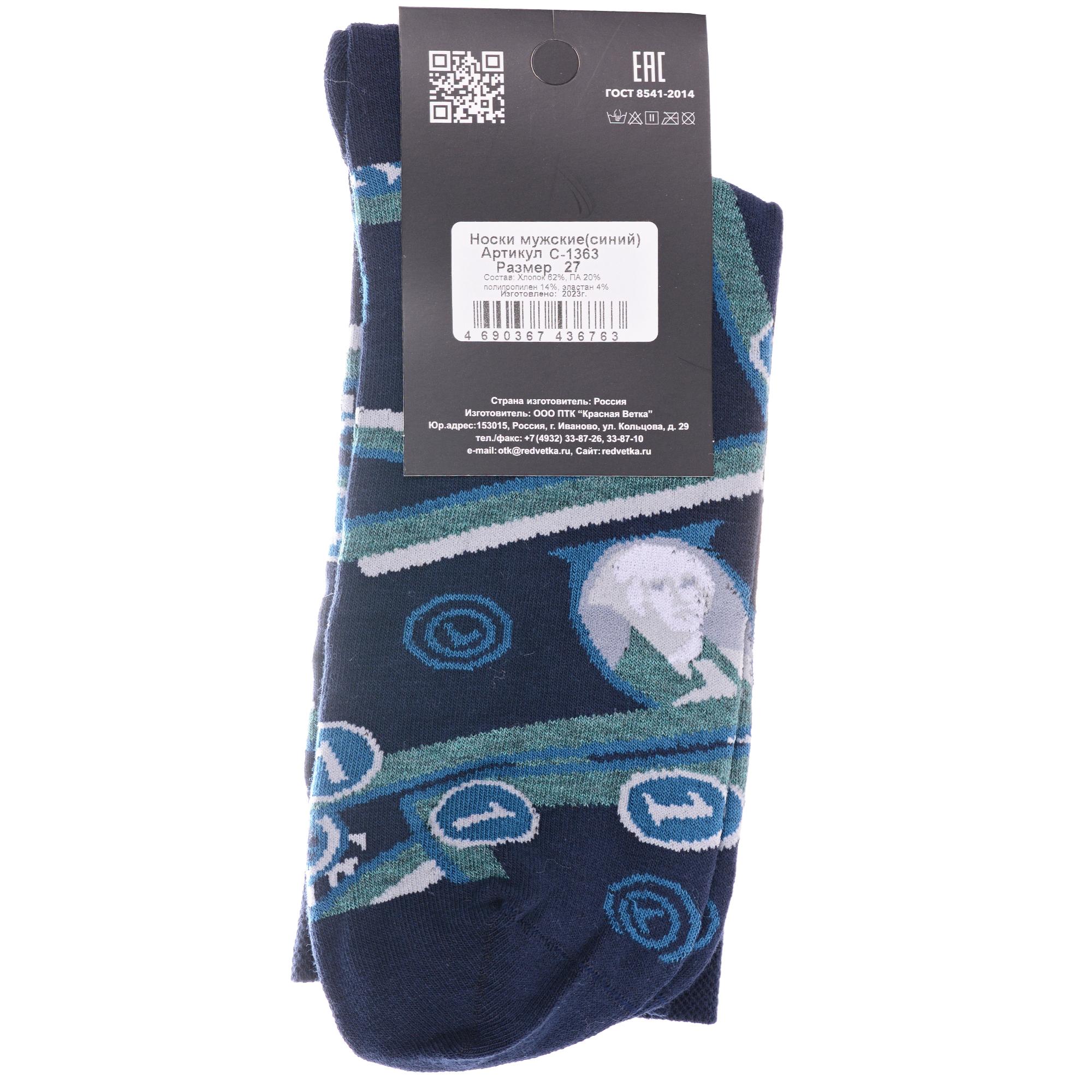Комплект мужских носков из 2 пар, круглогодичные, средней длины, цвет синие, повседневные, возможно бесшовные, принт (рисунок): надписи, люди, с узором, крупные контрастные рисунки, состав: 62% хлопок, 20% полиамид, 14% полипропилен, 4% эластан, арт. 2-С-1363. Производитель «КРАСНАЯ ВЕТКА» Россия под брендом «Красная ветка».