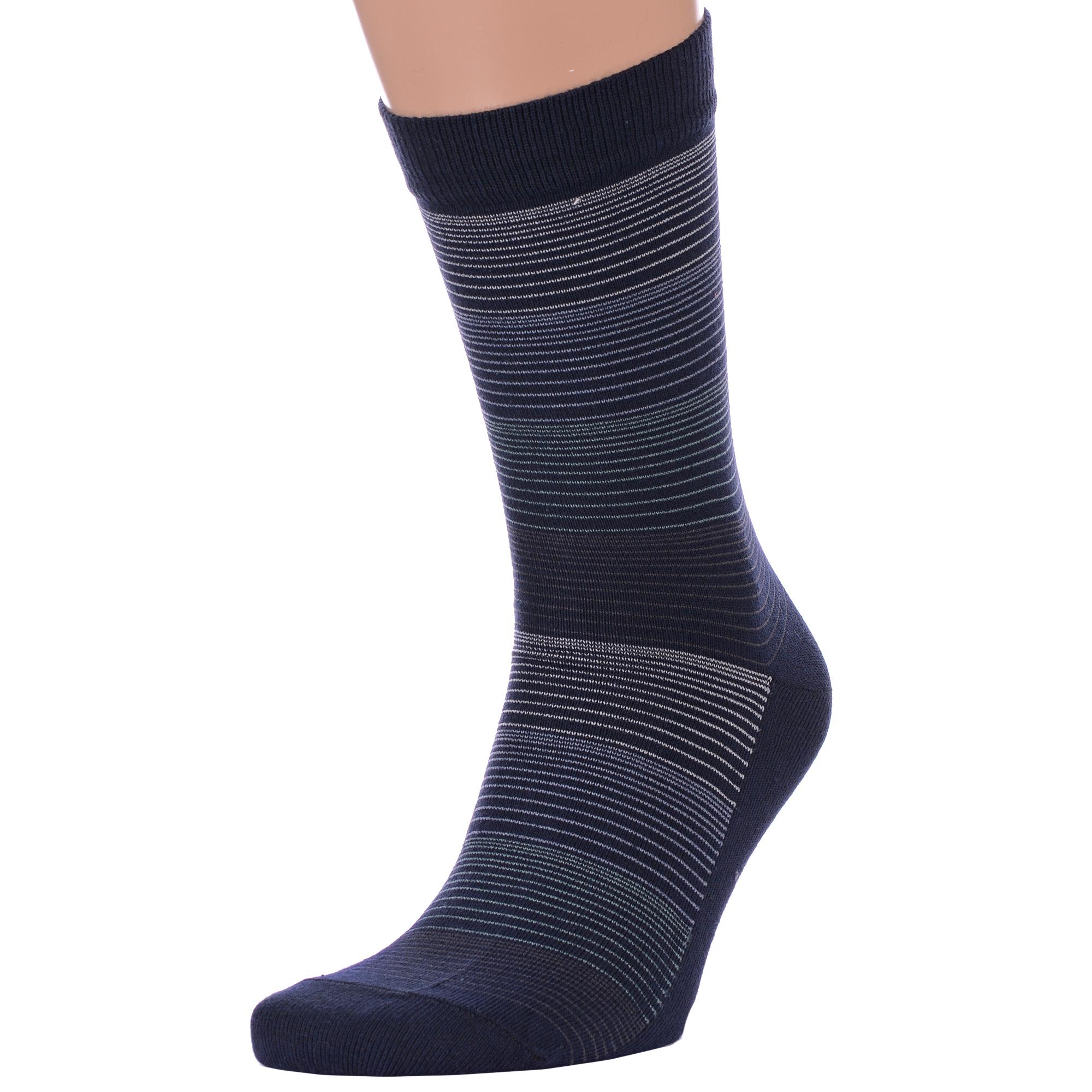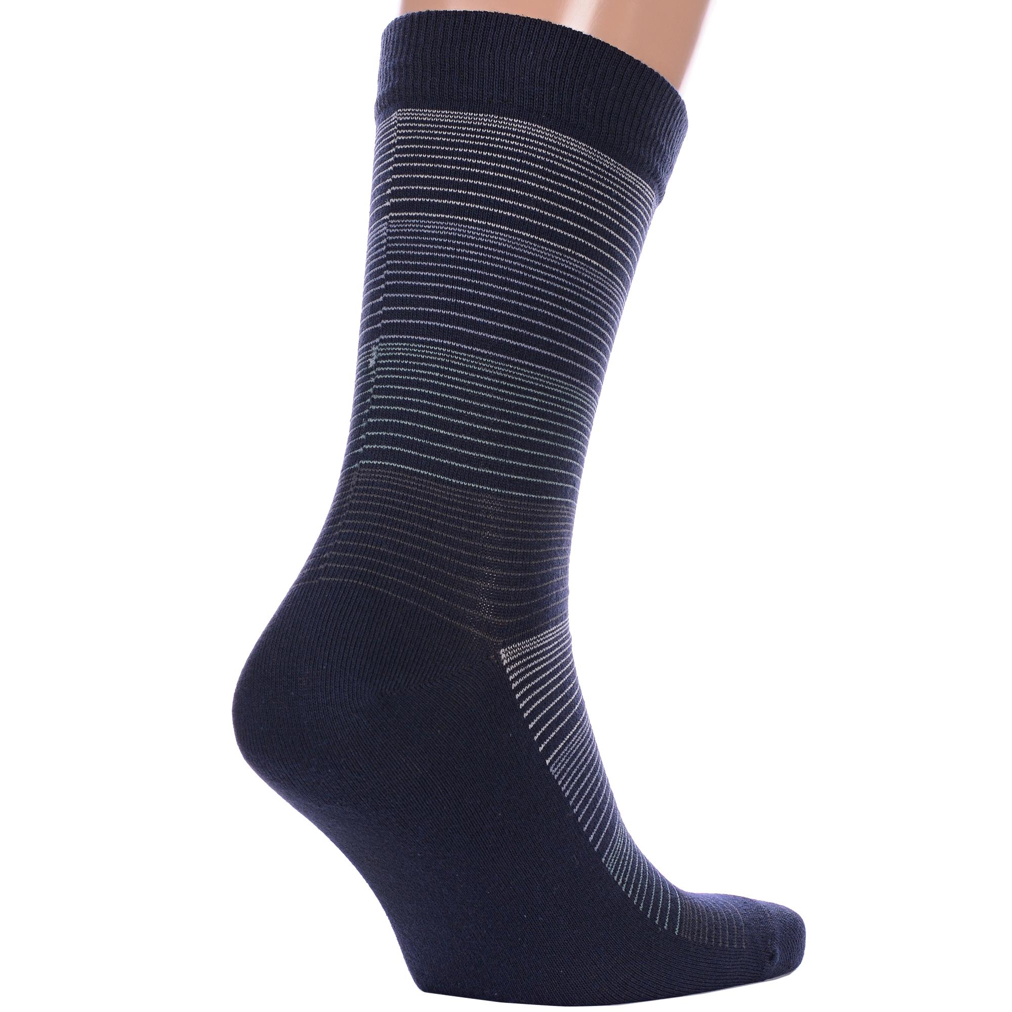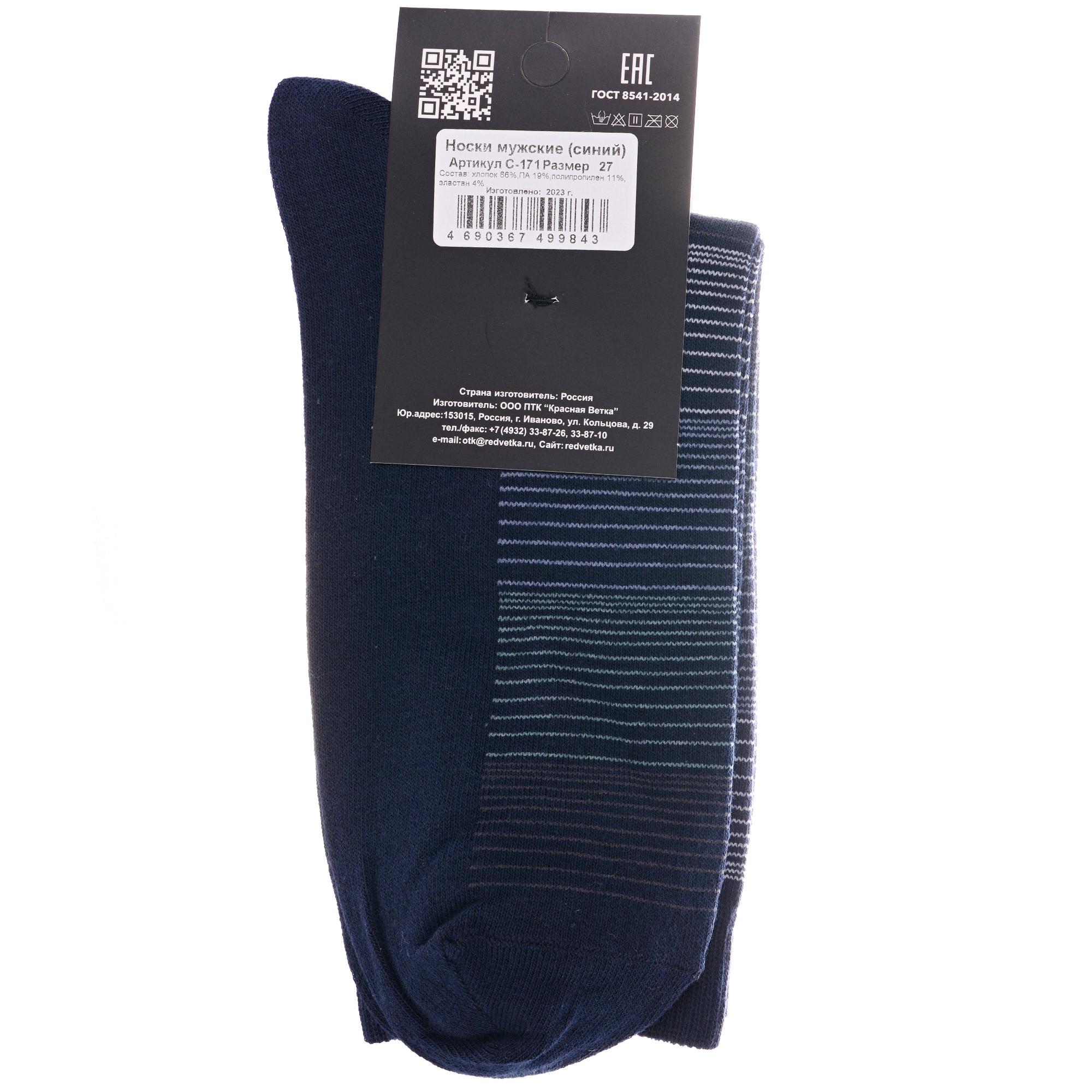 Комплект мужских носков из 2 пар, круглогодичные, средней длины, цвет синие, классические, возможно бесшовные, принт (рисунок): полоски, с узором, состав: 66% хлопок, 19% полиамид, 11% полипропилен, 4% эластан, арт. 2-С-171. Производитель «КРАСНАЯ ВЕТКА» Россия под брендом «Красная ветка».