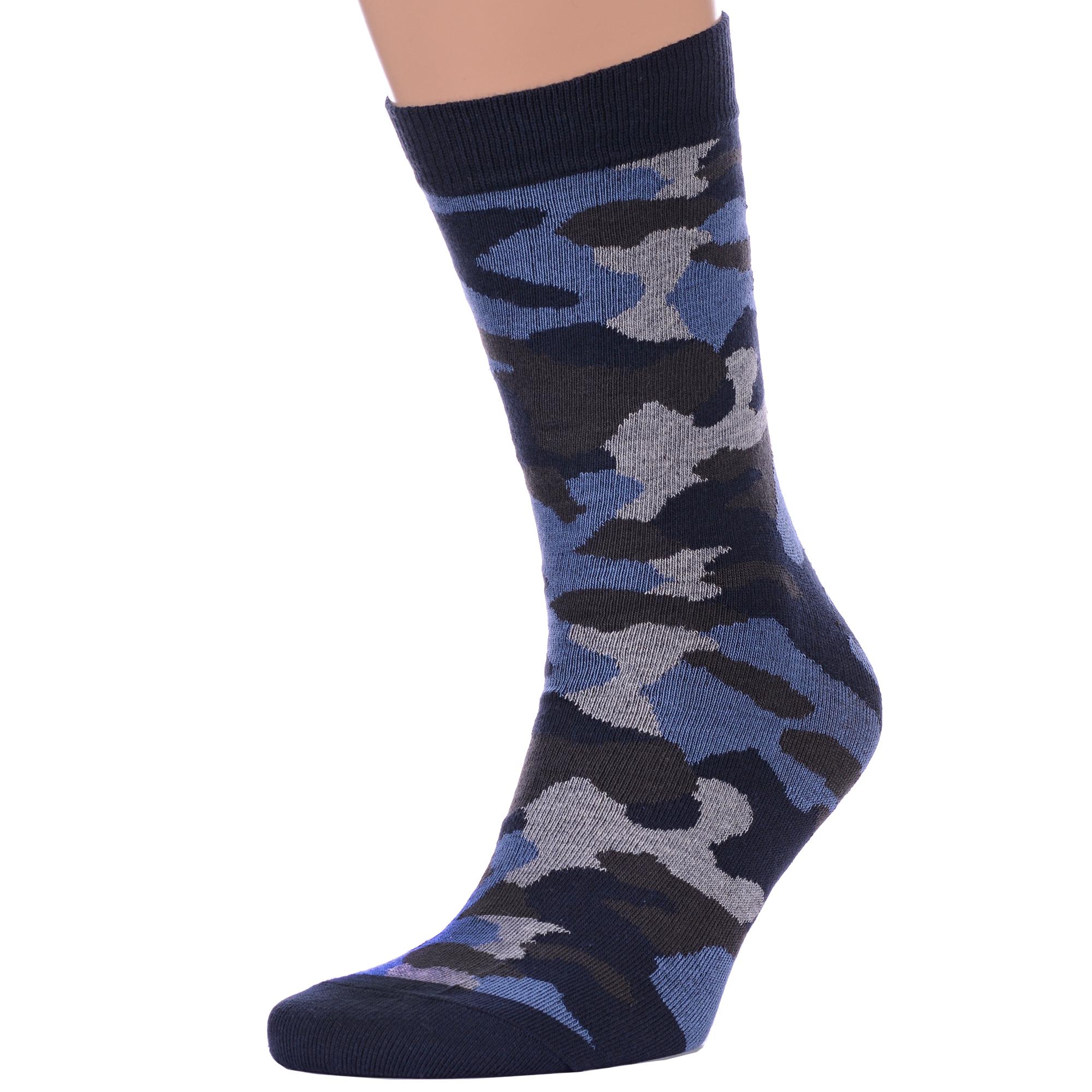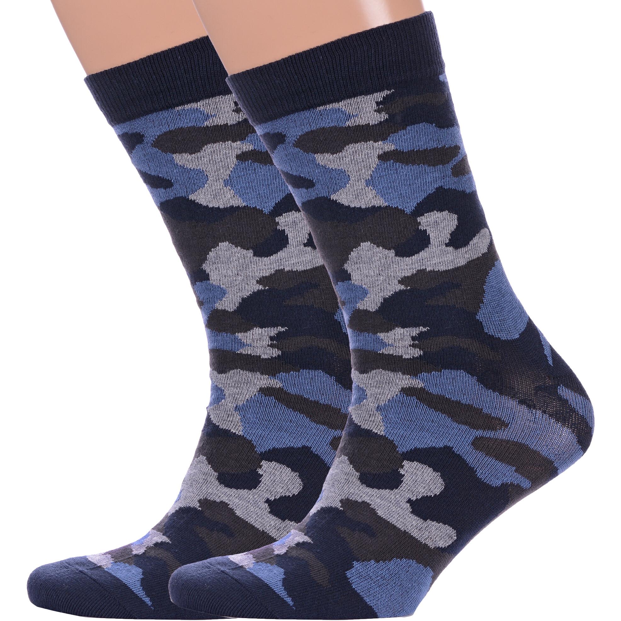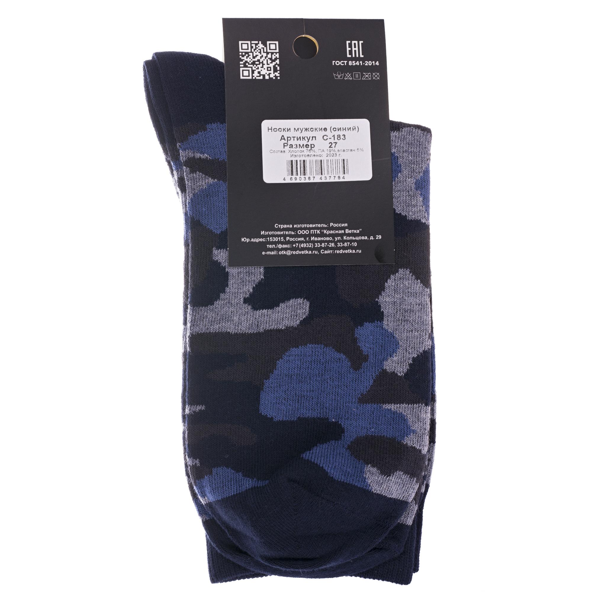 Комплект мужских носков из 2 пар, круглогодичные, средней длины, цвет синие, повседневные, возможно бесшовные, принт (рисунок): милитари, с узором, состав: 76% хлопок, 19% полиамид, 5% эластан, арт. 2-С-183. Производитель «КРАСНАЯ ВЕТКА» Россия под брендом «Красная ветка».