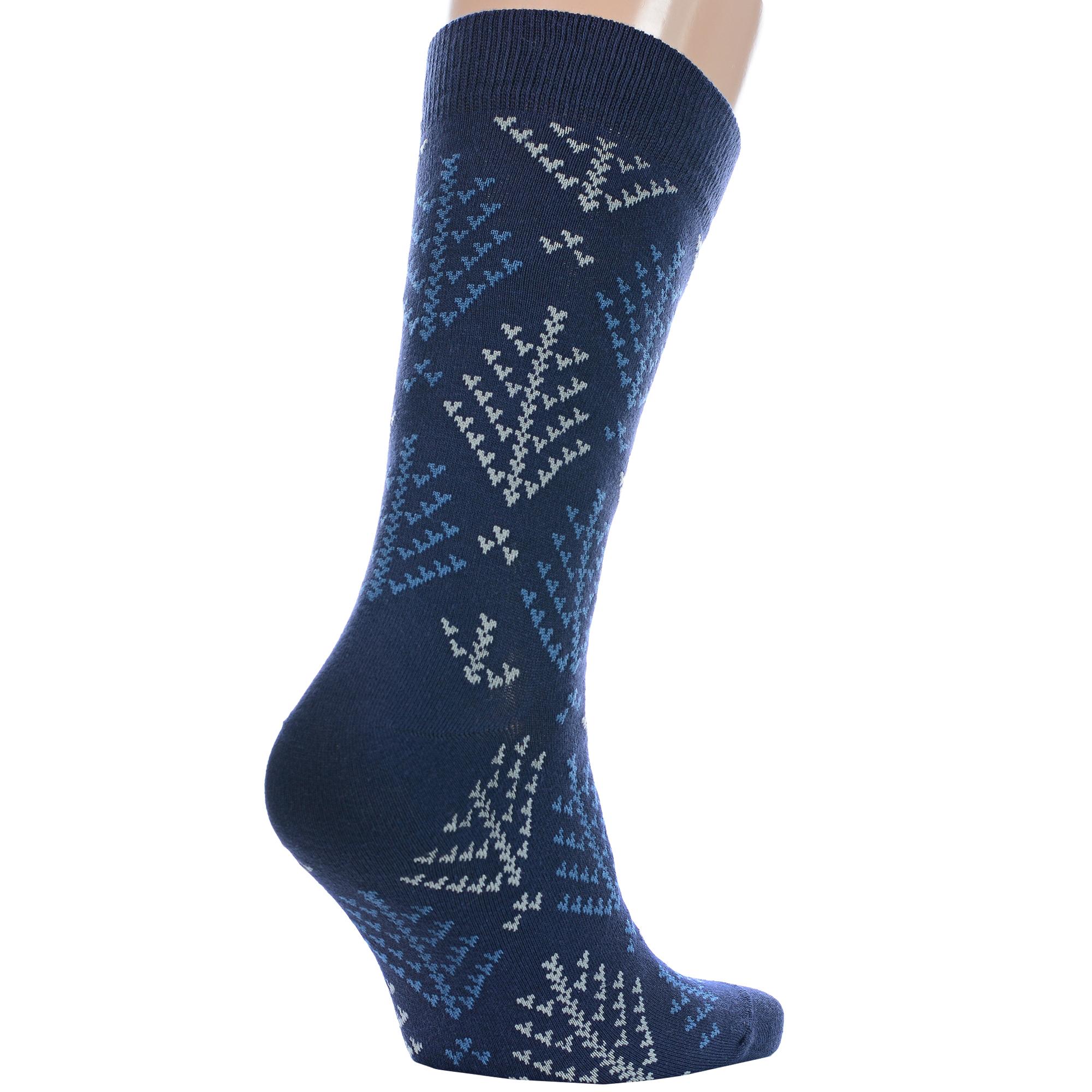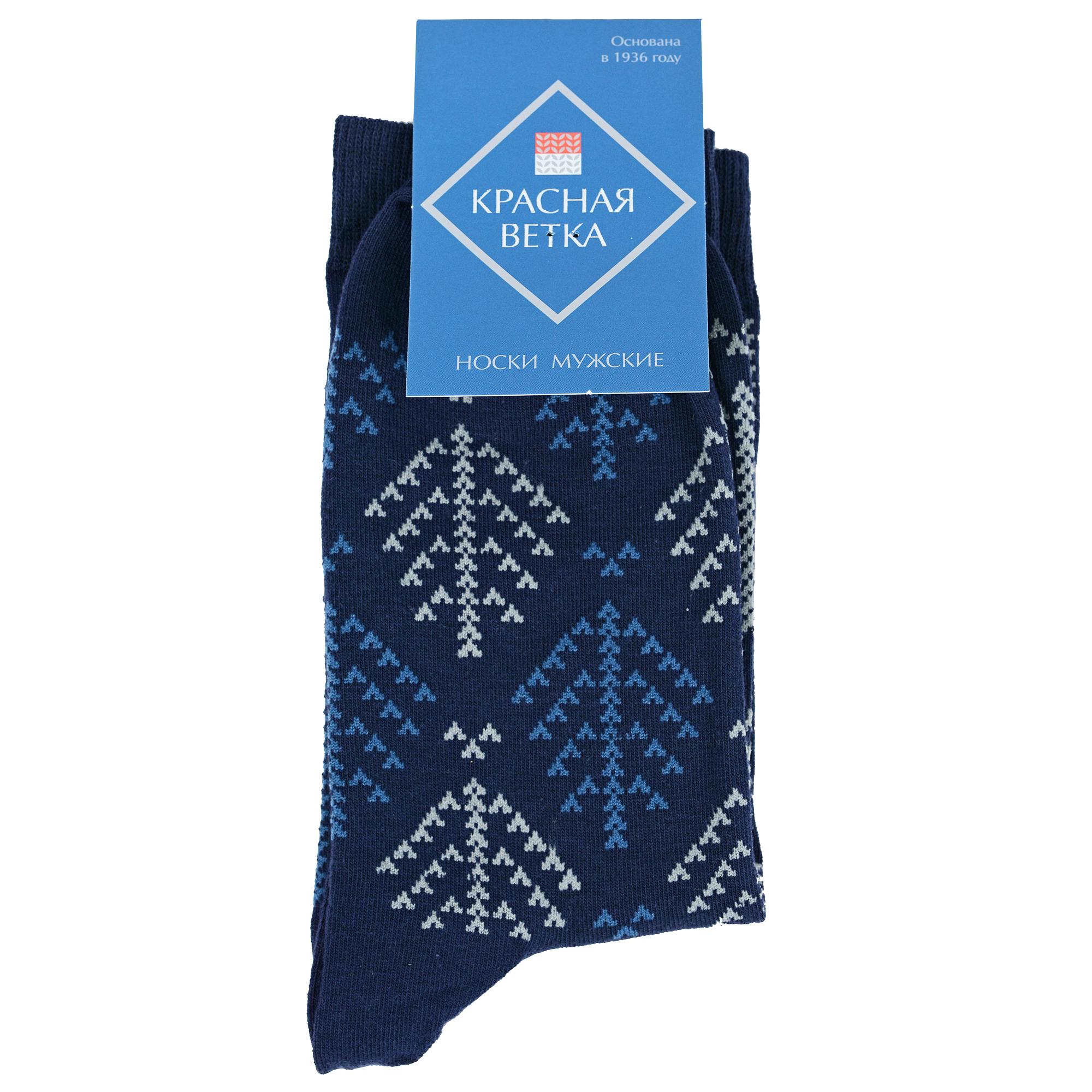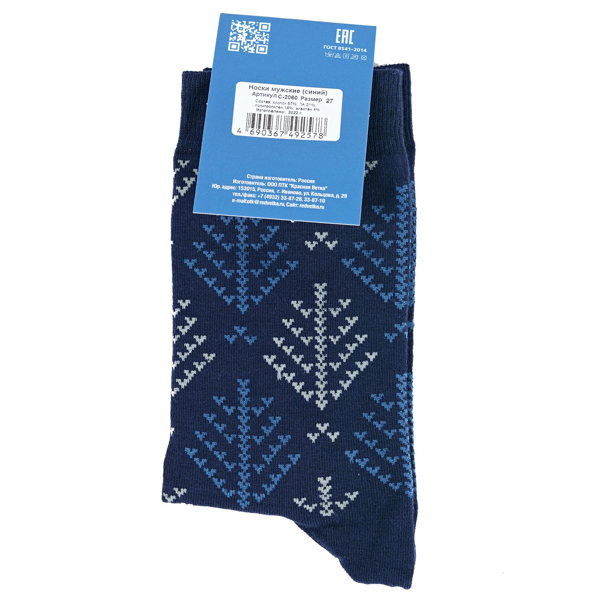 Комплект мужских носков из 2 пар, круглогодичные, средней длины, цвет синие, повседневные, возможно бесшовные, принт (рисунок): норвежский жаккард, геометрия, с узором, состав: 57% хлопок, 21% полиамид, 18% полипропилен, 4% эластан, арт. 2-С-2060. Производитель «КРАСНАЯ ВЕТКА» Россия под брендом «Красная ветка».