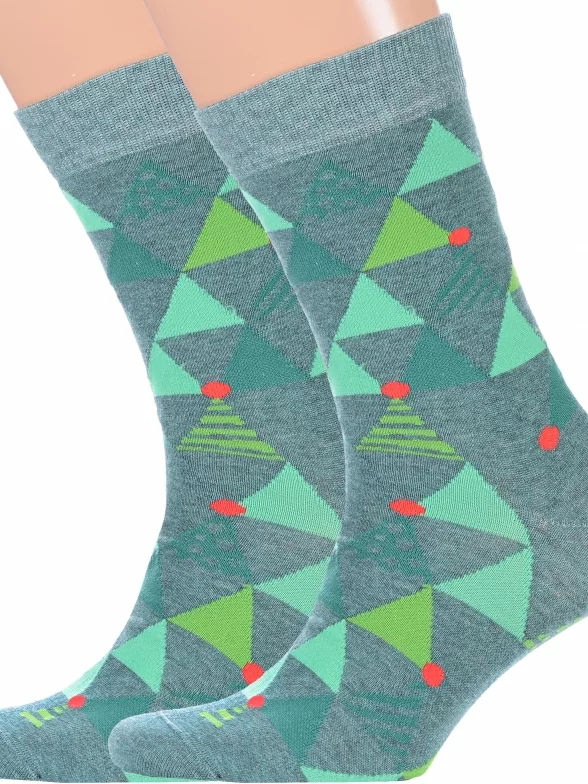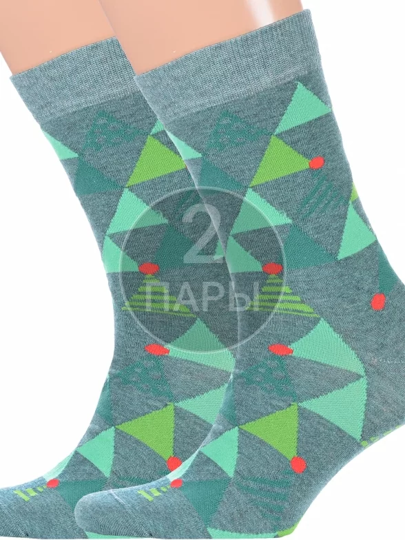 Комплект мужских носков из 2 пар, круглогодичные, средней длины, цвет зеленый, повседневные, возможно бесшовные, принт (рисунок): новый год, геометрия, с узором, крупные контрастные рисунки, состав: 51% хлопок, 23% полипропилен, 22% полиамид, 4% эластан, арт. 2-С-2061. Производитель «КРАСНАЯ ВЕТКА» Россия под брендом «Красная ветка».