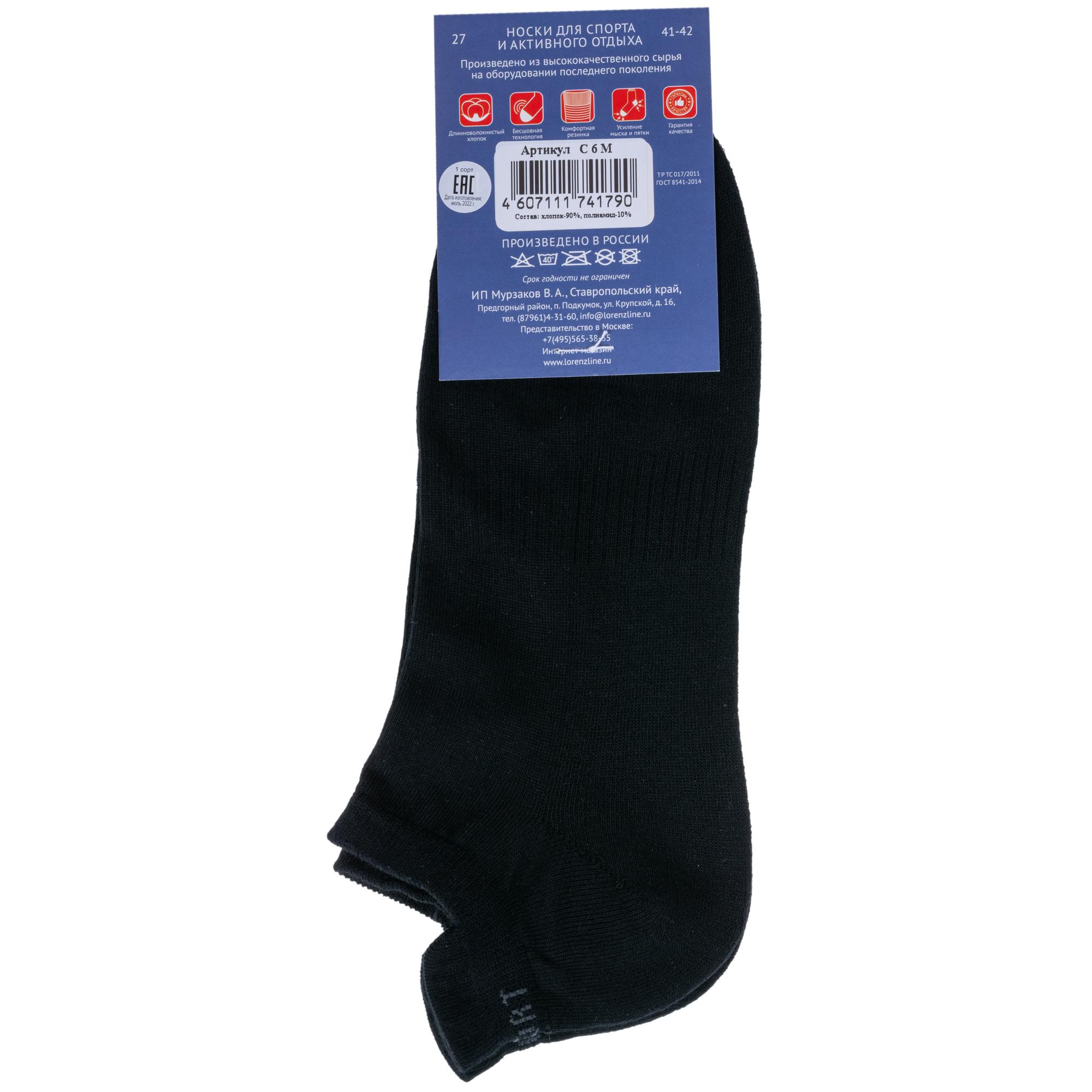 Комплект мужских носков из 2 пар, круглогодичные или зимние, короткие, цвет черный, теплые, спортивные, с махровым следом, шов кеттельный (бесшовная технология), принт (рисунок): спортивные, однотонный, небольшой рисунок, состав: 90% хлопок, 10% полиамид, арт. 2-С6М. Производитель «ИП Мурзаков В.А., Ставропольский край, Россия» под брендом «Lorenzline».
