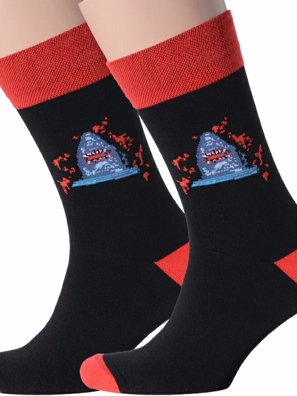 Комплект мужских носков из 2 пар, круглогодичные, средней длины, цвет "акула", повседневные, шов обычный (не бесшовные), принт (рисунок): хоррор / ужасы, люди, крупные контрастные рисунки, состав: 82% хлопок, 15% полиамид, 3% эластан, арт. 2-nm-219. Производитель «ИП Рыбалкин В.С., Московская область, г. Щелково» под брендом «Msclub».
