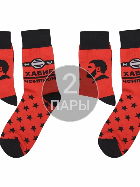 Комплект мужских носков из 2 пар, круглогодичные, средней длины, цвет "хабиб", повседневные, шов обычный (не бесшовные), принт (рисунок): спортивные, надписи, крупные контрастные рисунки, состав: 82% хлопок, 15% полиамид, 3% эластан, арт. 2-nm-222Э. Производитель «ИП Рыбалкин В.С., Московская область, г. Щелково» под брендом «Msclub».