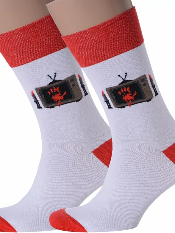 Комплект мужских носков из 2 пар, круглогодичные, средней длины, цвет "кровавый отпечаток", повседневные, шов обычный (не бесшовные), принт (рисунок): хоррор / ужасы, люди, крупные контрастные рисунки, состав: 82% хлопок, 15% полиамид, 3% эластан, арт. 2-nm-211Э. Производитель «ИП Рыбалкин В.С., Московская область, г. Щелково» под брендом «Msclub».