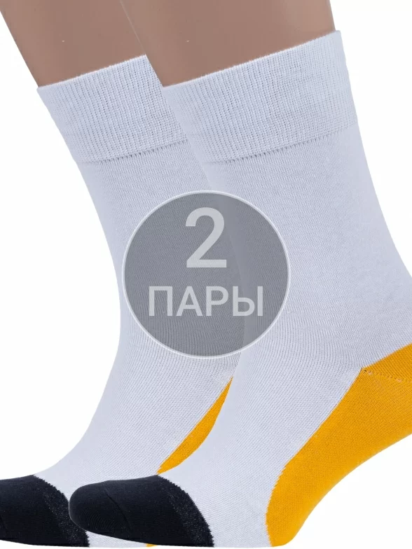 Комплект из 2 пар мужских носков MSCLUB №М47, 2-nm-532, БЕЛЫЕ с желтым