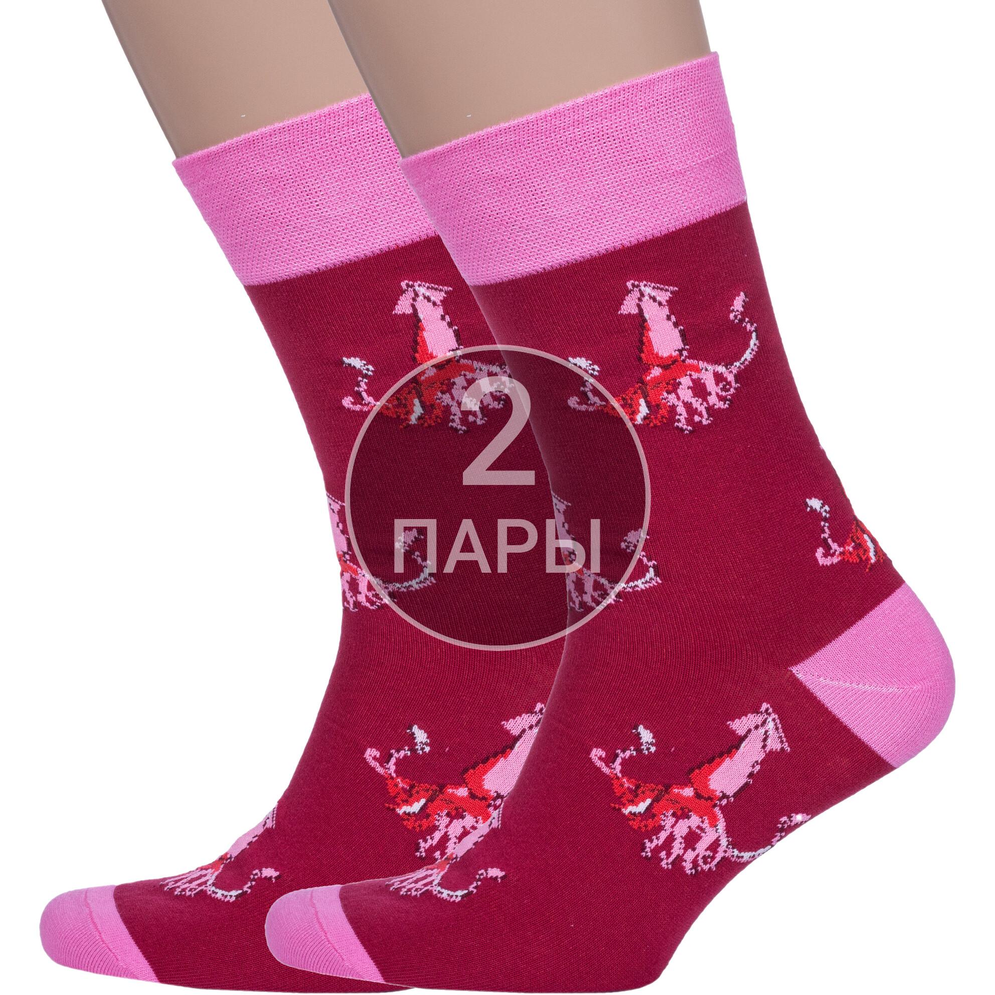 Комплект мужских носков из 2 пар, круглогодичные, средней длины, цвет бордовый, повседневные, шов обычный (не бесшовные), принт (рисунок): животные, состав: 82% хлопок, 15% полиамид, 3% эластан, арт. 2-nm-541. Производитель «ИП Рыбалкин В.С., Московская область, г. Щелково» под брендом «Msclub».