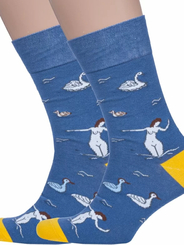Комплект мужских носков из 2 пар, круглогодичные, средней длины, цвет джинсовый, повседневные, шов обычный (не бесшовные), принт (рисунок): люди, состав: 82% хлопок, 15% полиамид, 3% эластан, арт. 2-nm-542. Производитель «ИП Рыбалкин В.С., Московская область, г. Щелково» под брендом «Msclub».