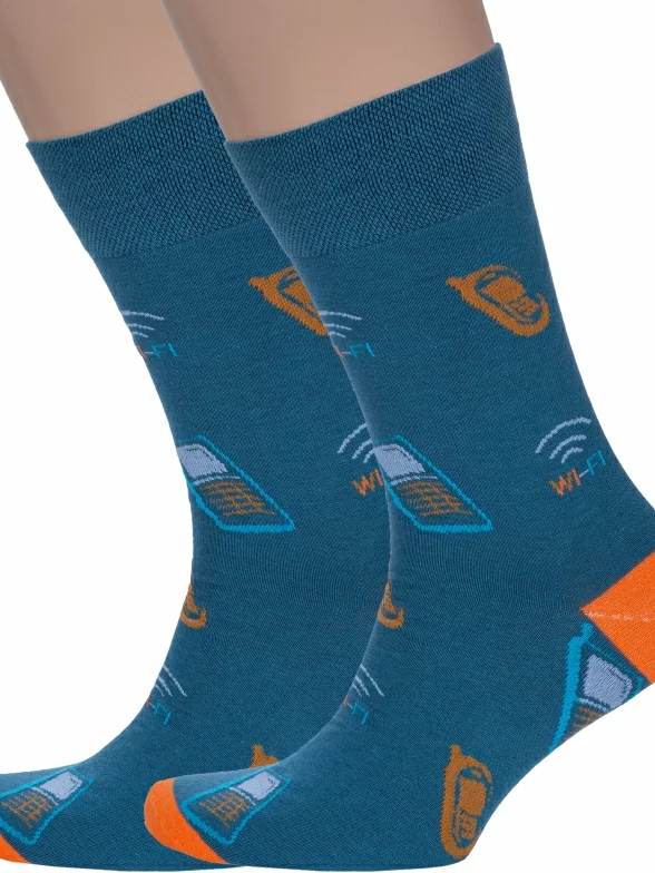 Комплект мужских носков из 2 пар, круглогодичные, средней длины, цвет джинсовый, повседневные, шов обычный (не бесшовные), принт (рисунок): работа / офис, состав: 82% хлопок, 15% полиамид, 3% эластан, арт. 2-nm-584. Производитель «ИП Рыбалкин В.С., Московская область, г. Щелково» под брендом «Msclub».