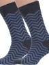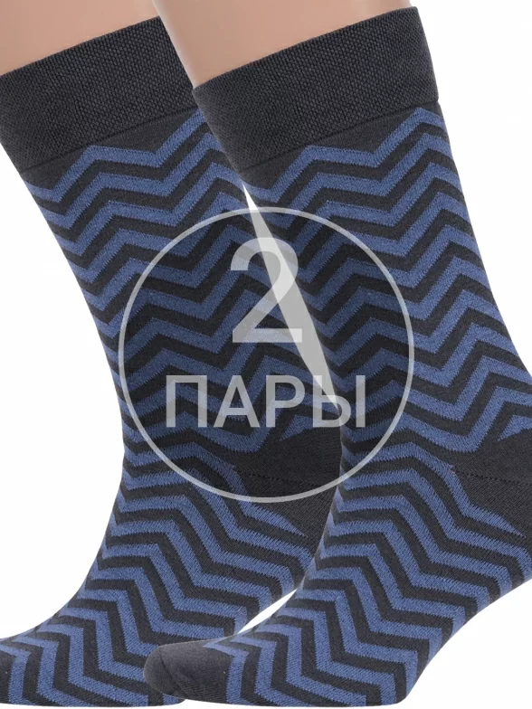 Комплект мужских носков из 2 пар, круглогодичные, средней длины, цвет графитово-джинсовый, повседневные, шов обычный (не бесшовные), принт (рисунок): зигзаг / молния, геометрический, крупные контрастные рисунки, состав: 82% хлопок, 15% полиамид, 3% эластан, арт. 2-nm-356. Производитель «ИП Рыбалкин В.С., Московская область, г. Щелково» под брендом «Msclub».
