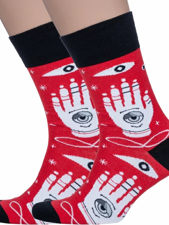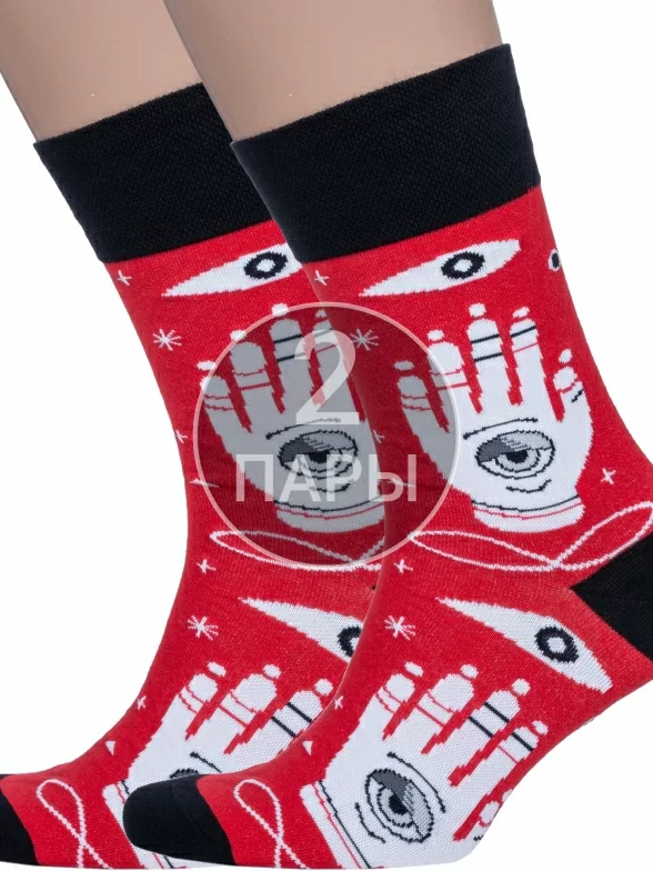 Комплект мужских носков из 2 пар, круглогодичные, средней длины, цвет красный, повседневные, шов обычный (не бесшовные), принт (рисунок): люди, состав: 82% хлопок, 15% полиамид, 3% эластан, арт. 2-nm-543. Производитель «ИП Рыбалкин В.С., Московская область, г. Щелково» под брендом «Msclub».