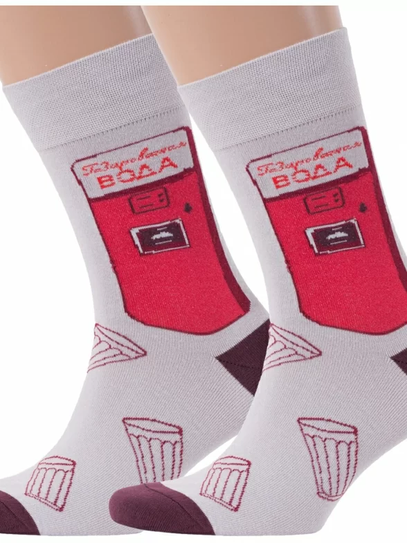 Комплект мужских носков из 2 пар, круглогодичные, средней длины, цвет светло-серый, повседневные, шов обычный (не бесшовные), принт (рисунок): ностальгия, техника, крупные контрастные рисунки, состав: 82% хлопок, 15% полиамид, 3% эластан, арт. 2-NM-76. Производитель «ИП Рыбалкин В.С., Московская область, г. Щелково» под брендом «Msclub».