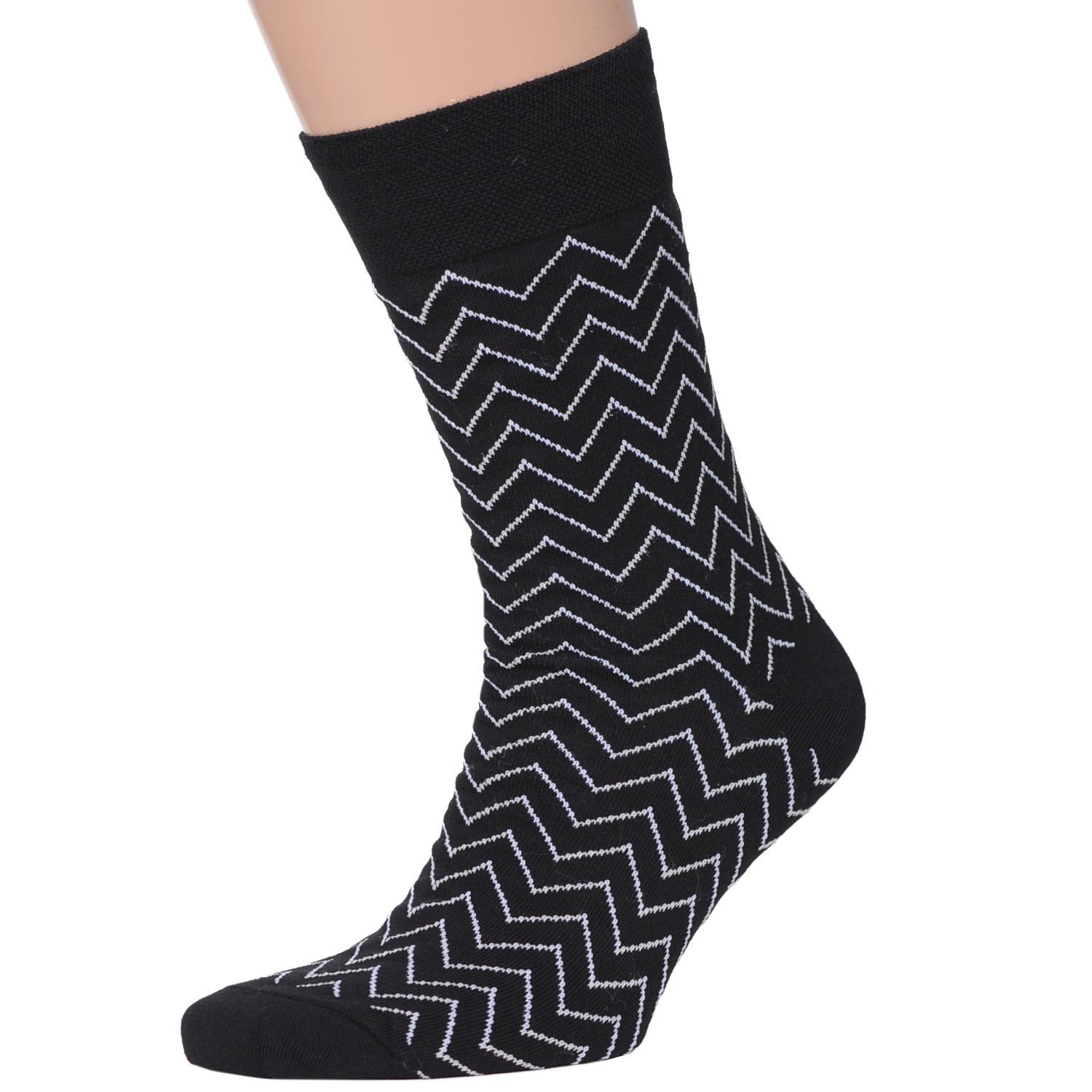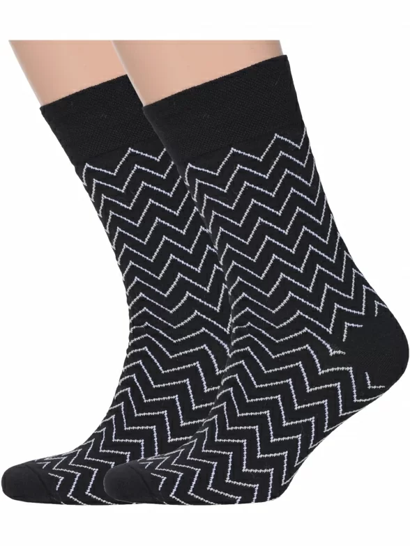 Комплект мужских носков из 2 пар, круглогодичные, средней длины, цвет черный, повседневные, шов обычный (не бесшовные), принт (рисунок): зигзаг / молния, состав: 82% хлопок, 15% полиамид, 3% эластан, арт. 2-nm-328. Производитель «ИП Рыбалкин В.С., Московская область, г. Щелково» под брендом «Msclub».