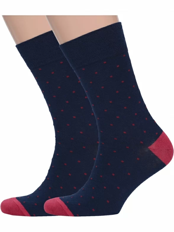 Комплект мужских носков из 2 пар, круглогодичные, средней длины, цвет темно-синие, повседневные, шов обычный (не бесшовные), принт (рисунок): мелкий принт, горох / точка, состав: 82% хлопок, 15% полиамид, 3% эластан, арт. 2-nm-377. Производитель «ИП Рыбалкин В.С., Московская область, г. Щелково» под брендом «Msclub».