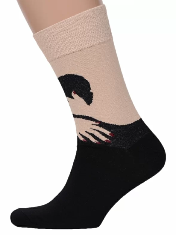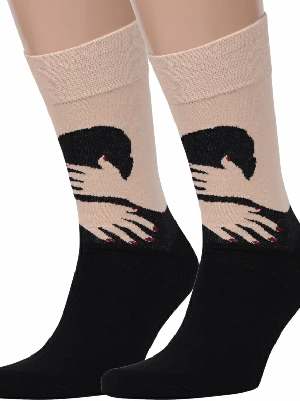 Комплект мужских носков из 2 пар, круглогодичные, средней длины, цвет черно-бежевый, повседневные, шов обычный (не бесшовные), принт (рисунок): фильмы / сериалы / мультики, люди, крупные контрастные рисунки, состав: 82% хлопок, 15% полиамид, 3% эластан, арт. 2-nm-382. Производитель «ИП Рыбалкин В.С., Московская область, г. Щелково» под брендом «Msclub».