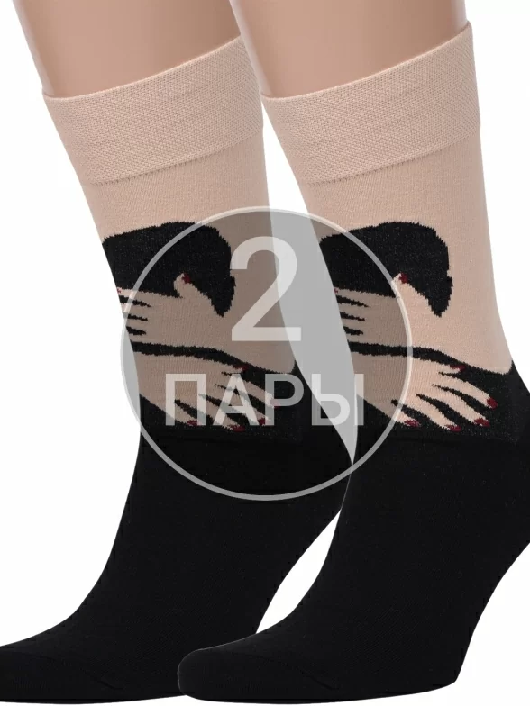 Комплект из 2 пар мужских носков MSCLUB №М35, 2-nm-382, ЧЕРНО-БЕЖЕВЫЕ
