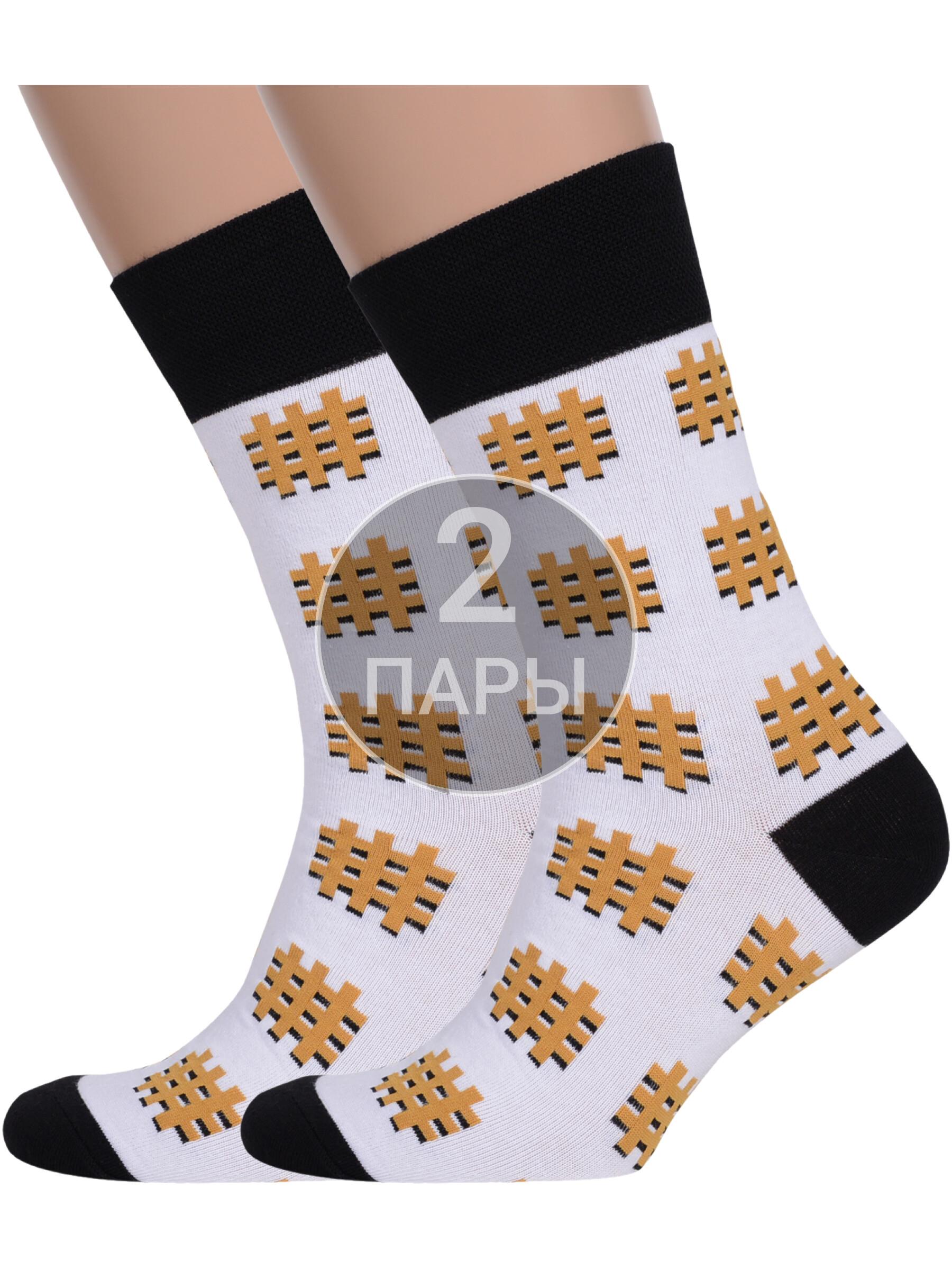 Комплект мужских носков из 2 пар, круглогодичные, средней длины, цвет белый, повседневные, шов обычный (не бесшовные), принт (рисунок): геометрия, крупные контрастные рисунки, состав: 82% хлопок, 15% полиамид, 3% эластан, арт. 2-nm-416. Производитель «ИП Рыбалкин В.С., Московская область, г. Щелково» под брендом «Msclub».