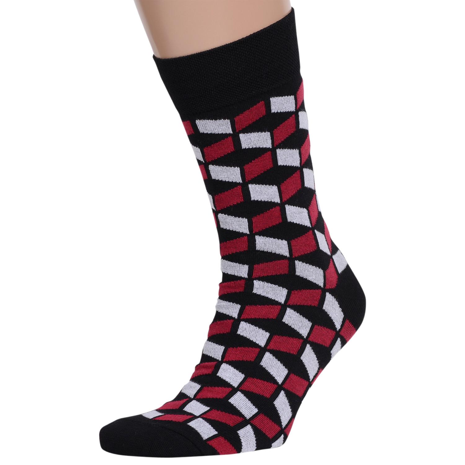 Комплект мужских носков из 2 пар, круглогодичные, средней длины, цвет черный, повседневные, шов обычный (не бесшовные), принт (рисунок): геометрия, крупные контрастные рисунки, состав: 82% хлопок, 15% полиамид, 3% эластан, арт. 2-nm-414. Производитель «ИП Рыбалкин В.С., Московская область, г. Щелково» под брендом «Msclub».