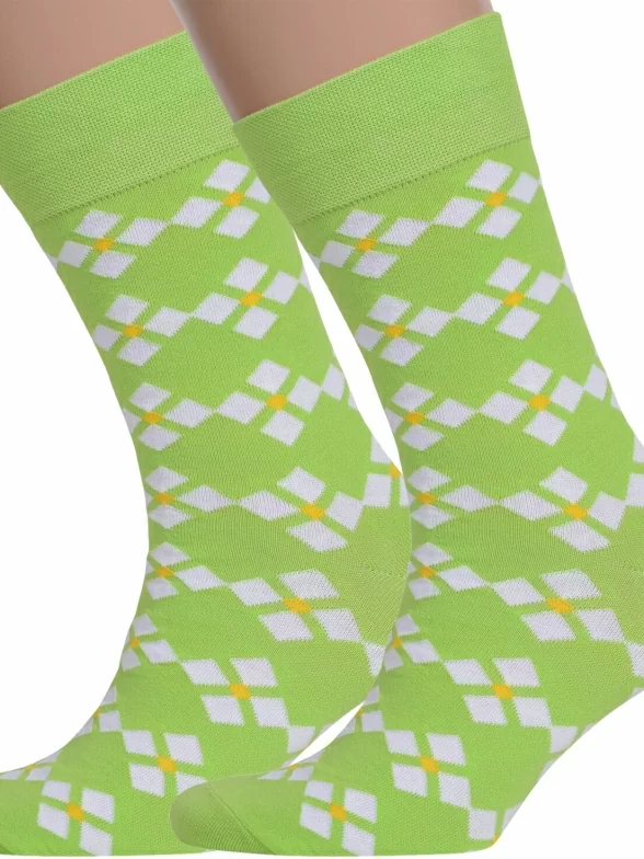 Комплект мужских носков из 2 пар, круглогодичные, средней длины, цвет салатовый, повседневные, шов обычный (не бесшовные), принт (рисунок): геометрия, клетка, состав: 82% хлопок, 15% полиамид, 3% эластан, арт. 2-nm-412. Производитель «ИП Рыбалкин В.С., Московская область, г. Щелково» под брендом «Msclub».