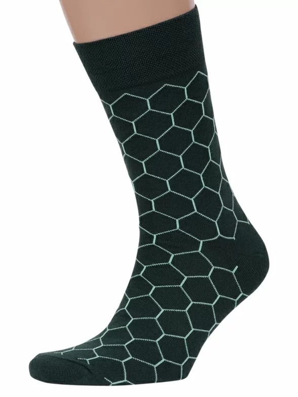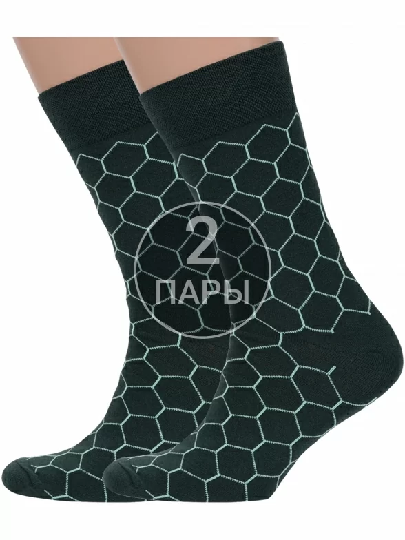 Комплект мужских носков из 2 пар, круглогодичные, средней длины, цвет темно-зеленый, повседневные, шов обычный (не бесшовные), принт (рисунок): геометрия, состав: 82% хлопок, 15% полиамид, 3% эластан, арт. 2-nm-422. Производитель «ИП Рыбалкин В.С., Московская область, г. Щелково» под брендом «Msclub».
