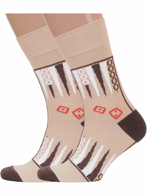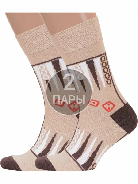 Комплект из 2 пар мужских носков MSCLUB №М42, 2-nm-454, БЕЖЕВЫЕ, "Нарды"