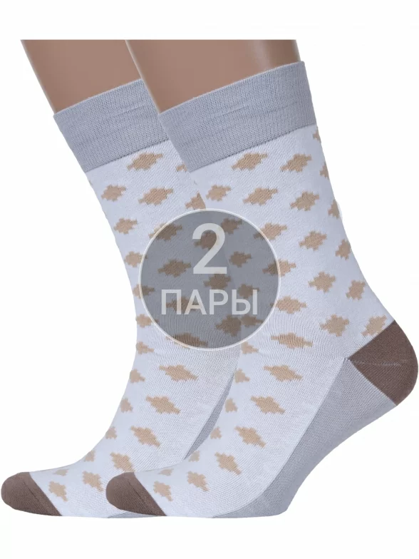 Комплект мужских носков из 2 пар, круглогодичные, средней длины, цвет белый, повседневные, шов обычный (не бесшовные), принт (рисунок): мелкий принт, состав: 82% хлопок, 15% полиамид, 3% эластан, арт. 2-nm-527. Производитель «ИП Рыбалкин В.С., Московская область, г. Щелково» под брендом «Msclub».