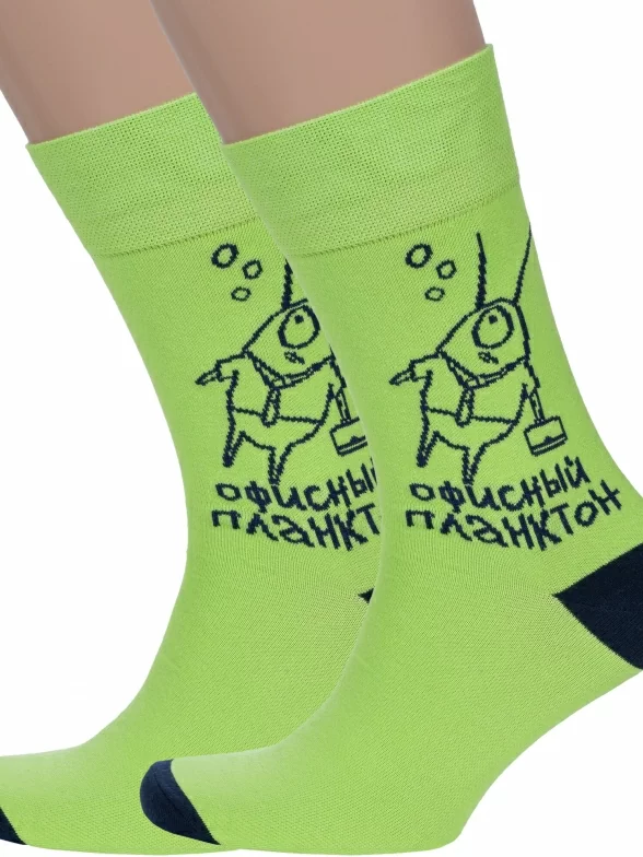 Комплект мужских носков из 2 пар, круглогодичные, средней длины, цвет салатовый, повседневные, шов обычный (не бесшовные), принт (рисунок): работа / офис, надписи, состав: 82% хлопок, 15% полиамид, 3% эластан, арт. 2-nm-580. Производитель «ИП Рыбалкин В.С., Московская область, г. Щелково» под брендом «Msclub».