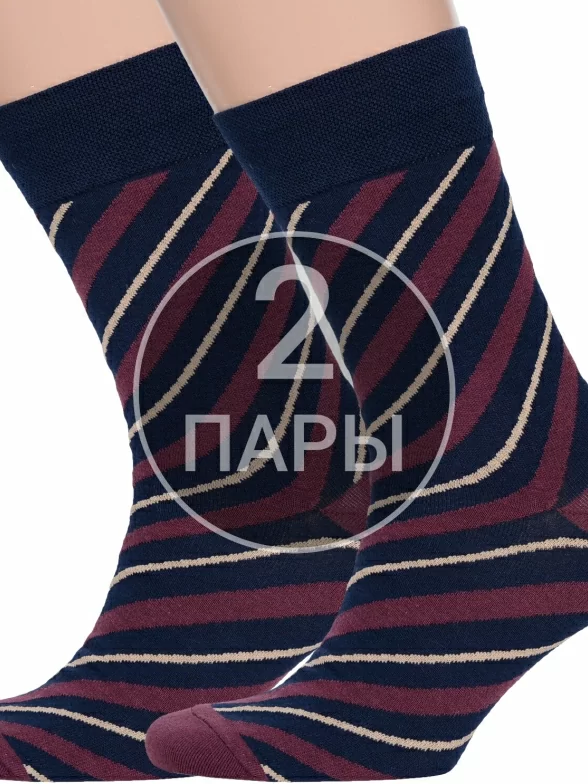 Комплект мужских носков из 2 пар, круглогодичные, средней длины, цвет сине-бордовый, повседневные, шов обычный (не бесшовные), принт (рисунок): полоски, состав: 82% хлопок, 15% полиамид, 3% эластан, арт. 2-nm-355. Производитель «ИП Рыбалкин В.С., Московская область, г. Щелково» под брендом «Msclub».