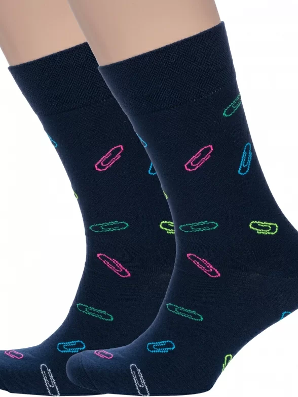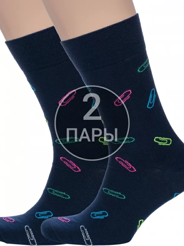 Комплект мужских носков из 2 пар, круглогодичные, средней длины, цвет темно-синие, повседневные, шов обычный (не бесшовные), принт (рисунок): работа / офис, состав: 82% хлопок, 15% полиамид, 3% эластан, арт. 2-nm-589. Производитель «ИП Рыбалкин В.С., Московская область, г. Щелково» под брендом «Msclub».