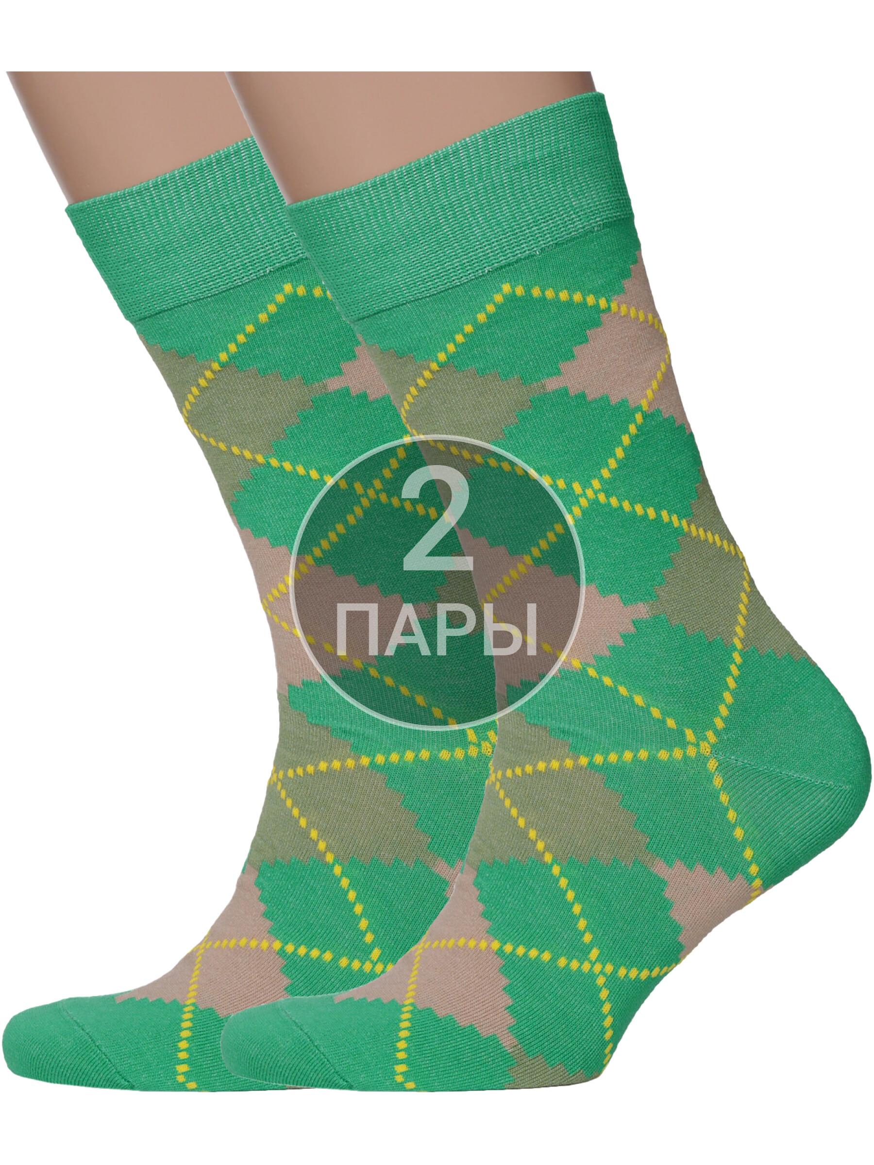Комплект мужских носков из 2 пар, круглогодичные, средней длины, цвет зеленый, повседневные, шов обычный (не бесшовные), принт (рисунок): геометрия, аргайл, с узором, крупные контрастные рисунки, состав: 80% хлопок, 17% полиамид, 3% лайкра (эластан), арт. 2-VAX-20. Производитель «ООО «Чулочно-носочная фабрика «Нева-Сокс», Ленинградская обл, Россия» под брендом «Нева-сокс».