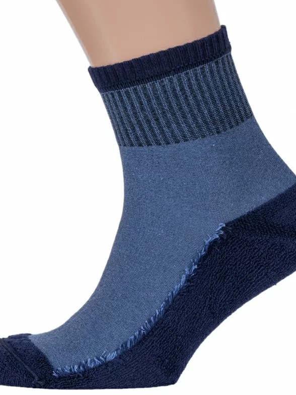Изготовлены на фабрике в Беларуси в г. Бресте из хлопка с добавлением полиэстера и эластана для износостойкости изделия и комфортной посадки. Укороченная модель с махровым следом, двойным бортом (манжетом резинки) и неощутимым швом на мыске.