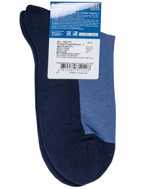 Две пары носков (джинсово-синие и серо-черные) арт. 15С2330 с индивидуальными фабричными этикетками поставляются в плотном пластиковом пакете.