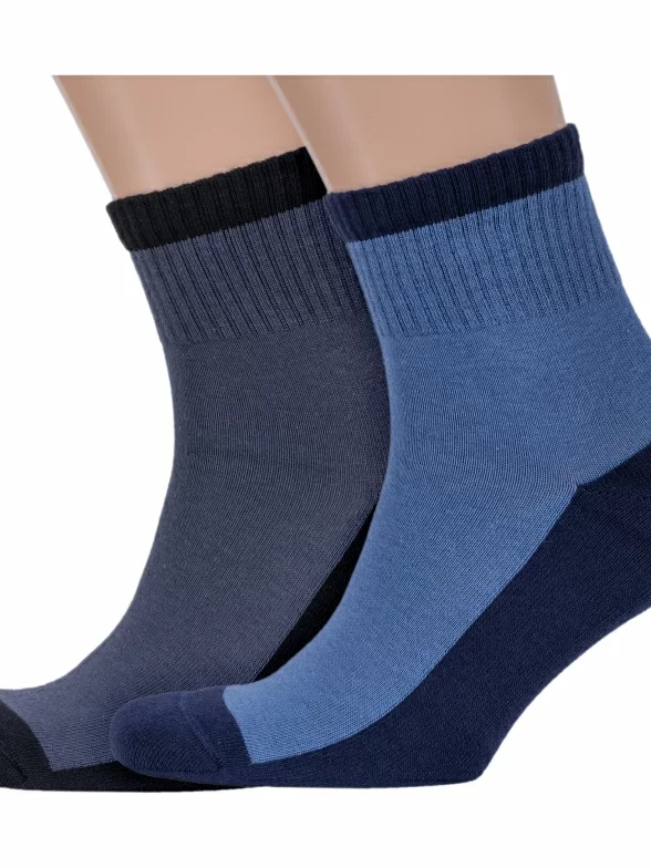 Комплект из 2 пар мужских носков с контрастными стопой и резинкой.