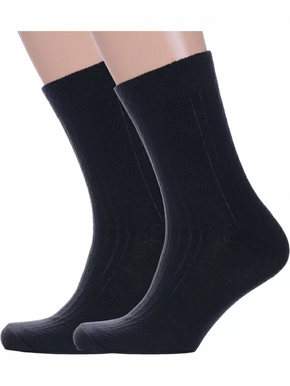 Комплект из 2 пар мужских полушерстяных носков GRAND LINE, 2-МТ-202, ЧЕРНЫЕ