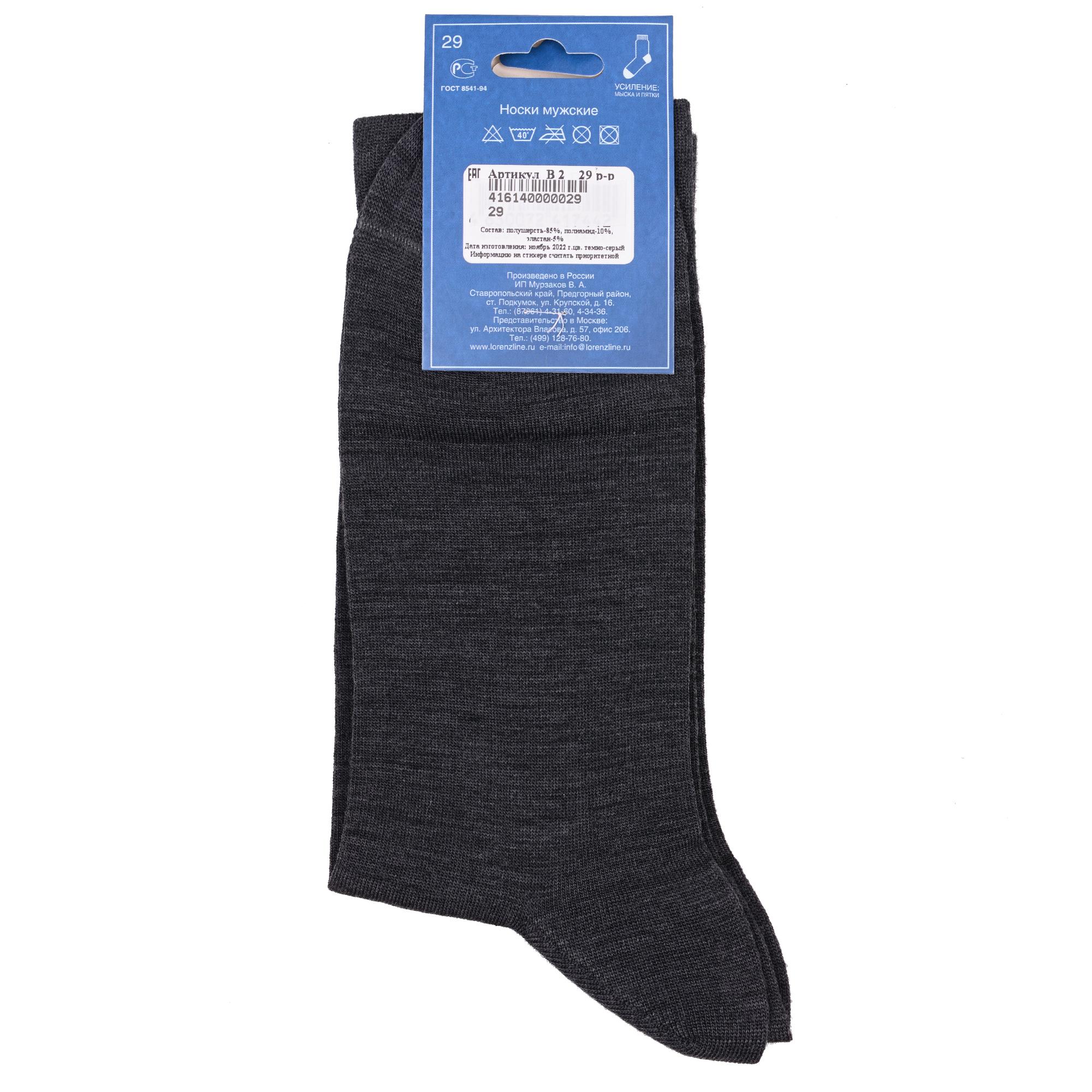 Комплект мужских носков из 2 пар, зимние, средней длины, цвет серый, теплые, классические, возможно бесшовные, принт (рисунок): однотонный, без рисунков/узоров, состав: 85% полушерсть, 10% полиамид, 5% эластан (лайкра), арт. 2-В2. Производитель «ИП Мурзаков В.А., Ставропольский край, Россия» под брендом «Lorenzline».