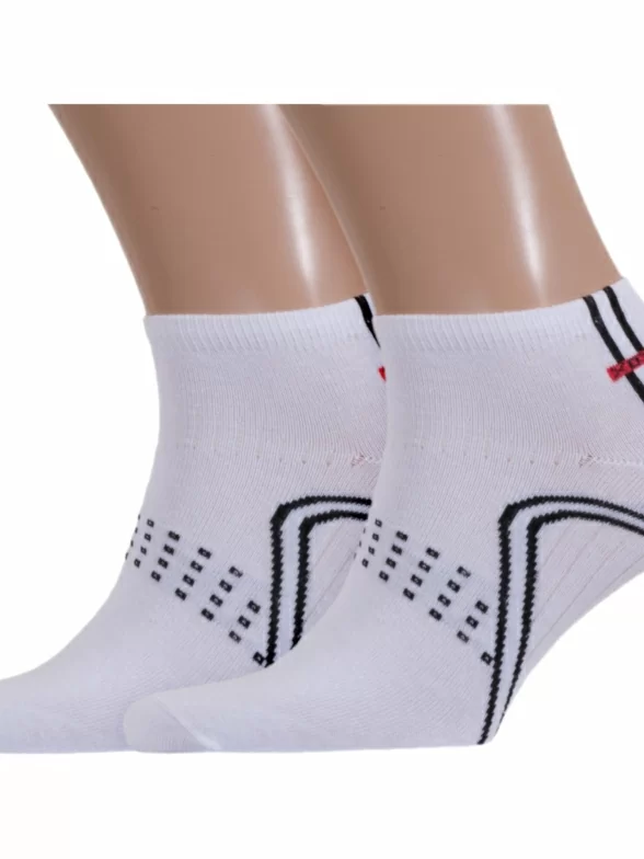Комплект мужских носков из 2 пар, круглогодичные, короткие, цвет белый, спортивные, повседневные, возможно бесшовные, принт (рисунок): спортивные, с узором, состав: 80% хлопок, 15% полиамид, 5% эластан, арт. 2-SPM-1. Производитель «ХОХ» Россия под брендом «Хох».