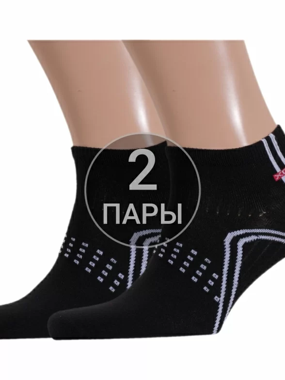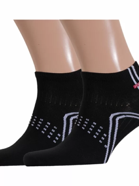 Комплект мужских носков из 2 пар, круглогодичные, короткие, цвет черный, спортивные, повседневные, возможно бесшовные, принт (рисунок): спортивные, с узором, состав: 80% хлопок, 15% полиамид, 5% эластан, арт. 2-SPM-1. Производитель «ХОХ» Россия под брендом «Хох».
