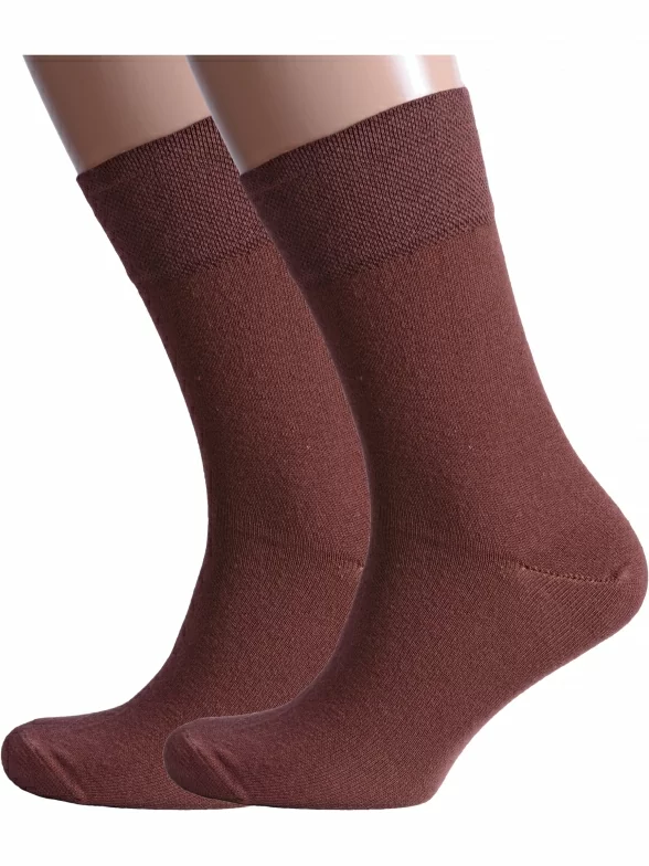 Комплект мужских носков из 2 пар, круглогодичные, средней длины, цвет шоколад, классические, шов обычный (не бесшовные), принт (рисунок): без рисунков/узоров, однотонный, состав: 80% хлопок, 18% полиамид, 2% эластан, арт. 2-H226. Производитель «ООО Альтаир, г. Орск, Оренбургская обл, Россия» под брендом «Альтаир».