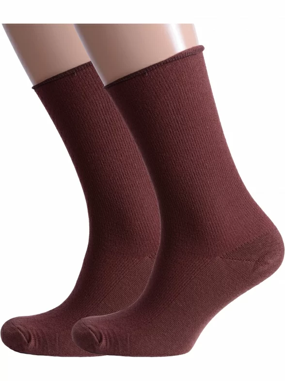 Комплект носков унисекс из 2 пар, круглогодичные, средней длины, цвет шоколад, медицинские, шов обычный (не бесшовные), принт (рисунок): в рубчик, однотонный, состав: 80% хлопок, 18% полиамид, 2% эластан, арт. 2-С198. Производитель «ООО Альтаир, г. Орск, Оренбургская обл, Россия» под брендом «Альтаир».