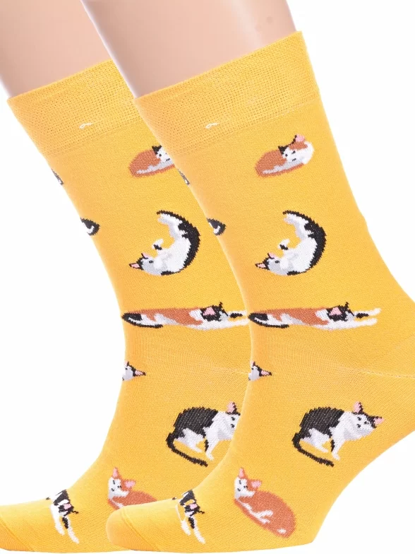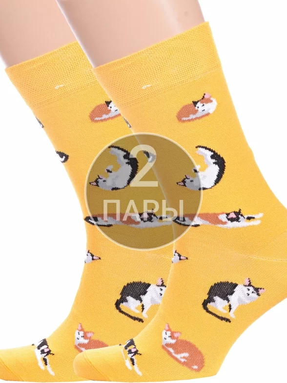 Комплект носков унисекс из 2 пар, круглогодичные, средней длины, цвет рис. 161, темно-желтый, повседневные, возможно бесшовные, принт (рисунок): с узором, животные, состав: 70% хлопок, 28% полиамид, 2% эластан, арт. 2-21С4200. Производитель «Брестский чулочный комбинат ОАО, Беларусь» под брендом «Брестские (бчк)».