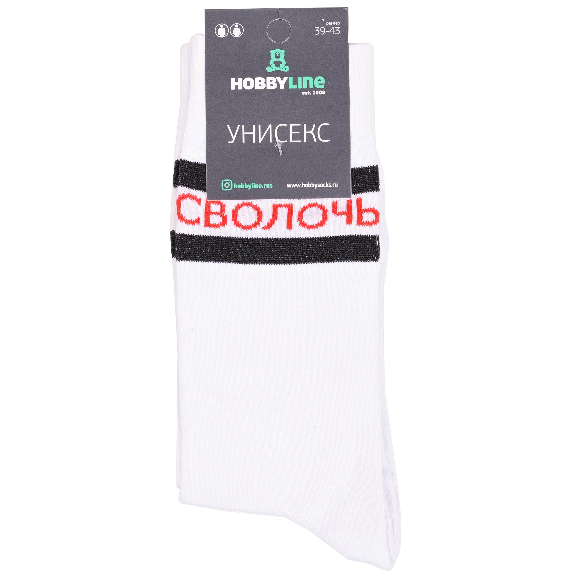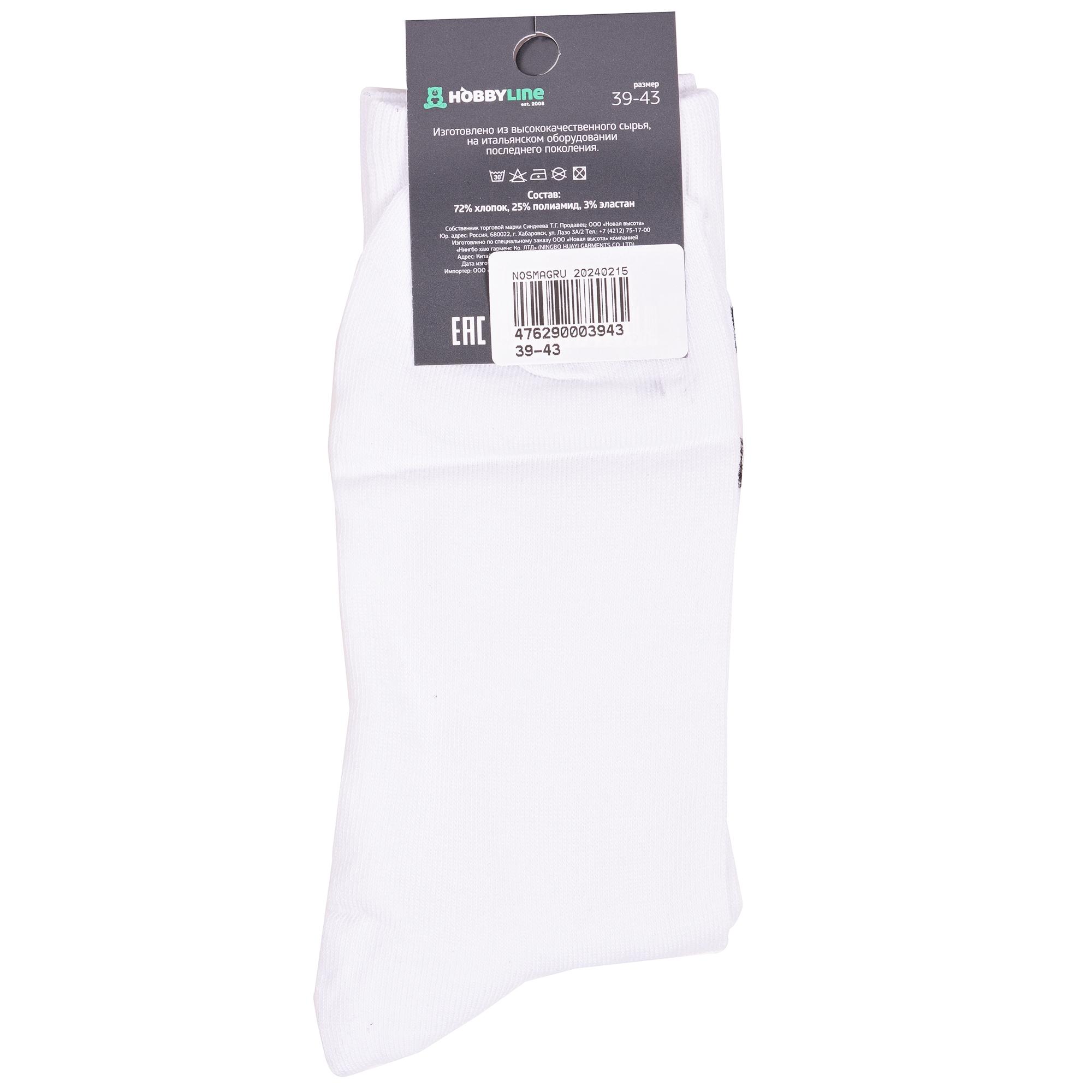 Комплект носков унисекс из 2 пар, круглогодичные, средней длины, цвет белый, повседневные, возможно бесшовные, принт (рисунок): надписи, с узором, состав: 72% хлопок, 25% полиамид, 3% эластан, арт. 2-нус80159-26. Производитель «Китай, страна бренда - Россия» под брендом «Hobby line».