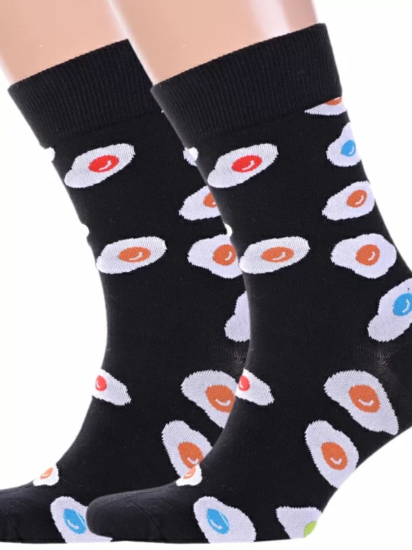 Комплект носков унисекс из 2 пар, круглогодичные, средней длины, цвет черный, повседневные, возможно бесшовные, принт (рисунок): еда и напитки, с узором, состав: 75% хлопок, 23% полиамид, 2% эластан, арт. 2-нус80128-03-06. Производитель «Китай, страна бренда - Россия» под брендом «Hobby line».