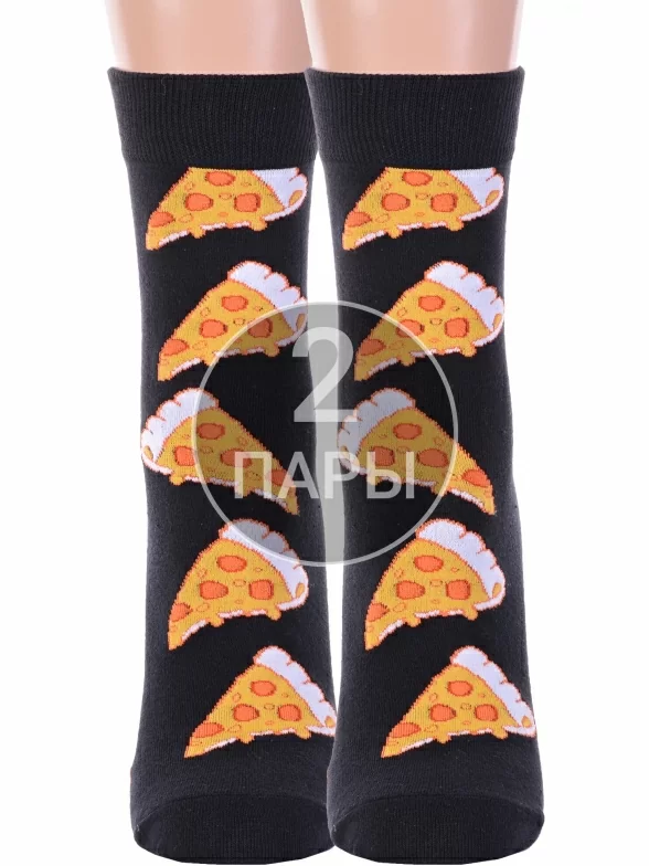 Комплект носков унисекс из 2 пар, круглогодичные, средней длины, цвет черный, повседневные, возможно бесшовные, принт (рисунок): еда и напитки, с узором, состав: 75% хлопок, 23% полиамид, 2% эластан, арт. 2-нус80128-04-01-08. Производитель «Китай, страна бренда - Россия» под брендом «Hobby line».
