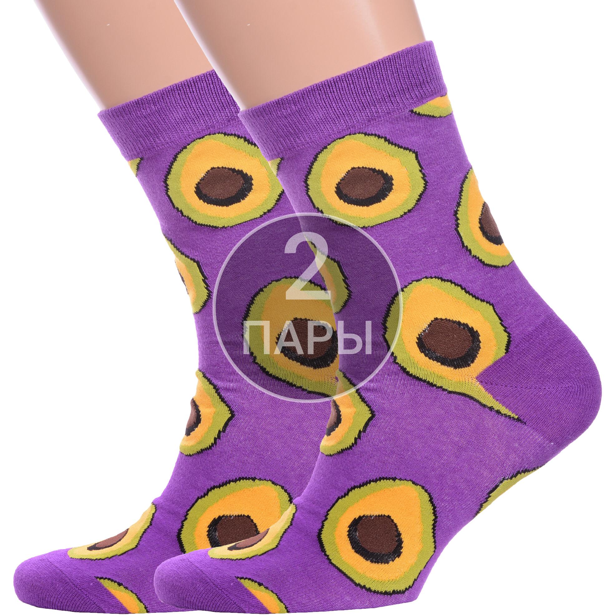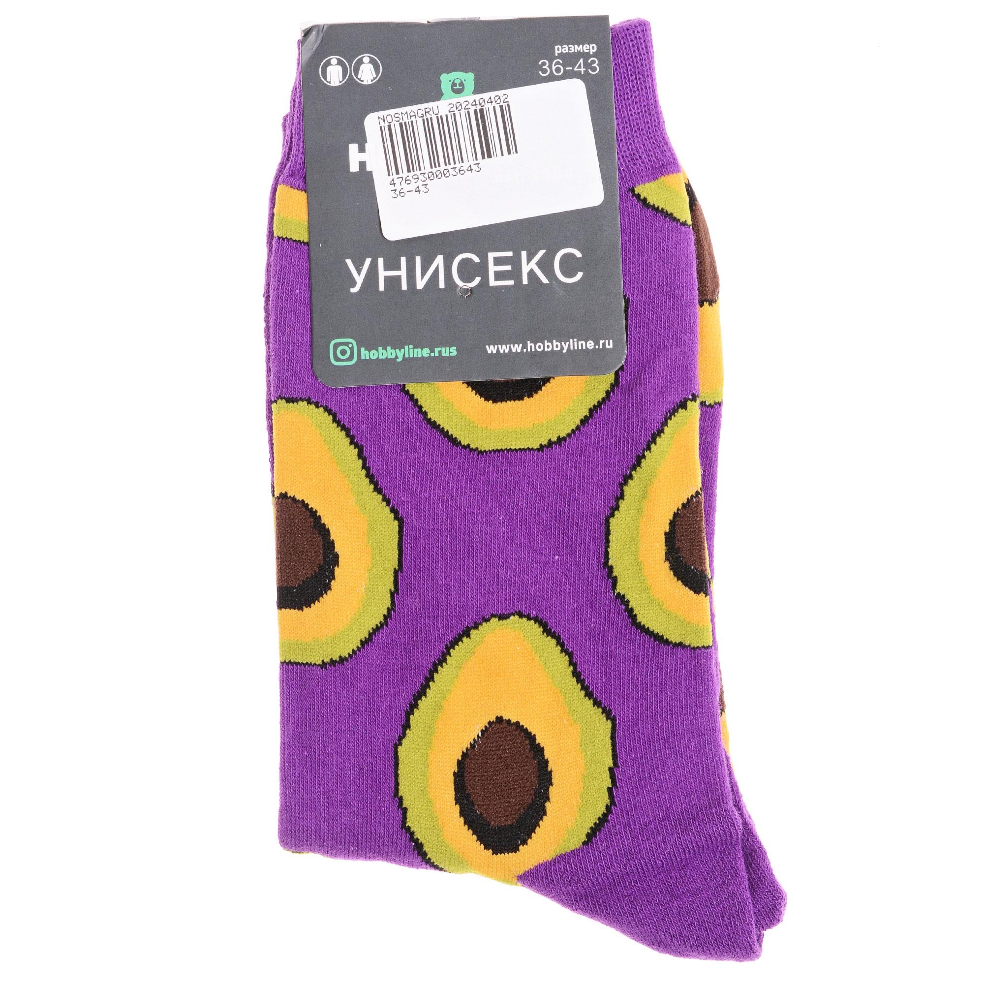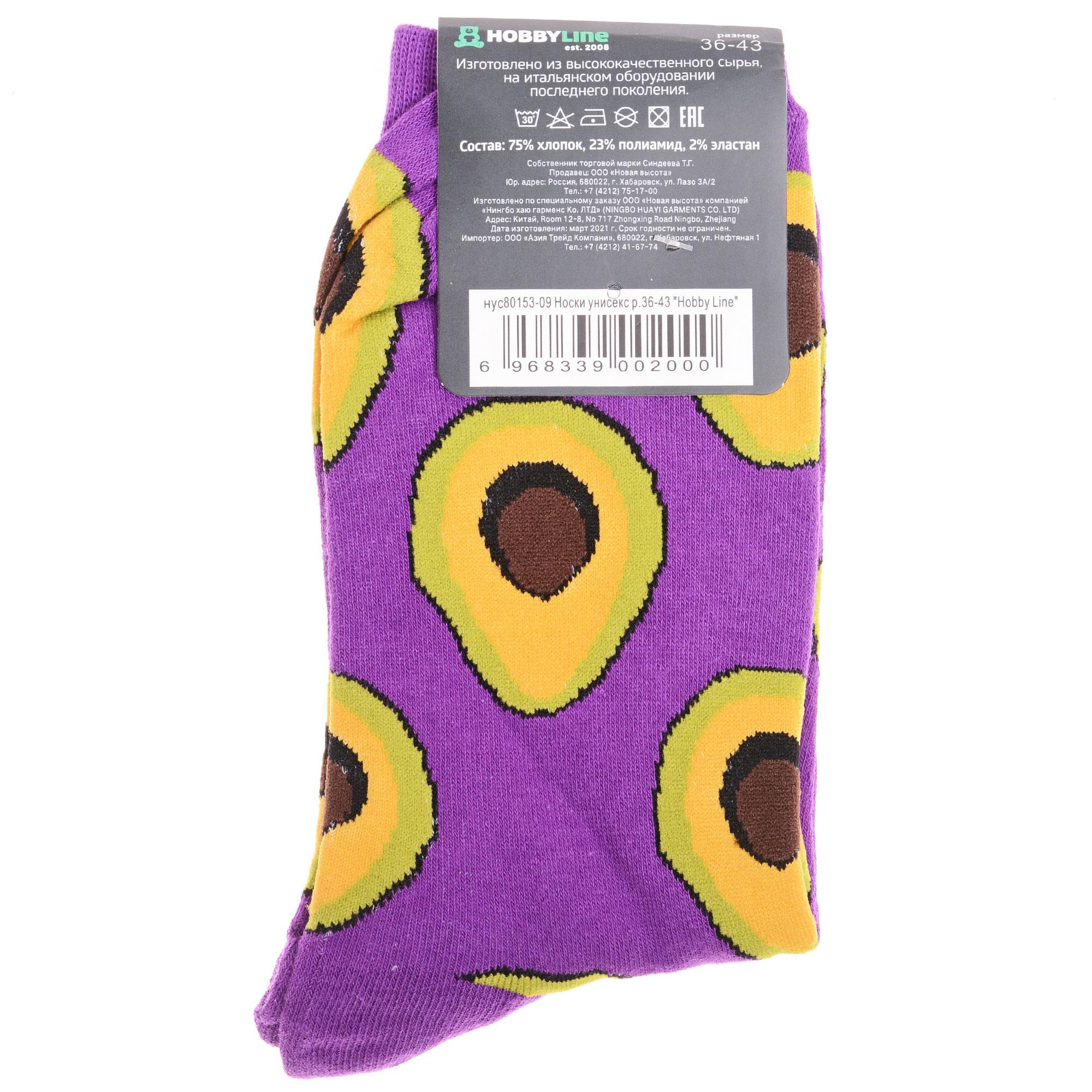 Комплект носков унисекс из 2 пар, круглогодичные, средней длины, цвет фиолетовый, повседневные, возможно бесшовные, принт (рисунок): ягодно-фруктовый, с узором, вкусности, состав: 75% хлопок, 23% полиамид, 2% эластан, арт. 2-нус80153-09. Производитель «Китай, страна бренда - Россия» под брендом «Hobby line».