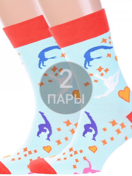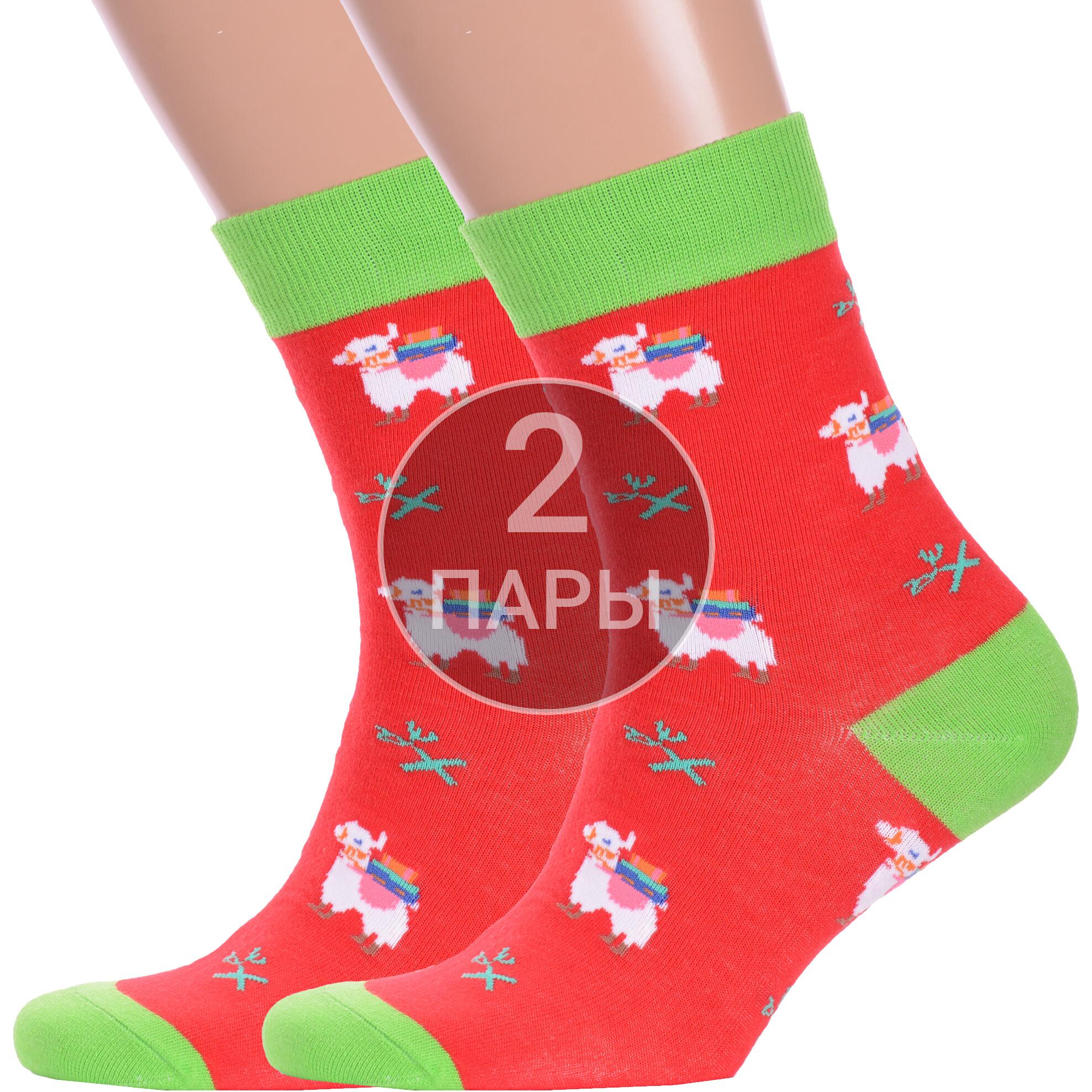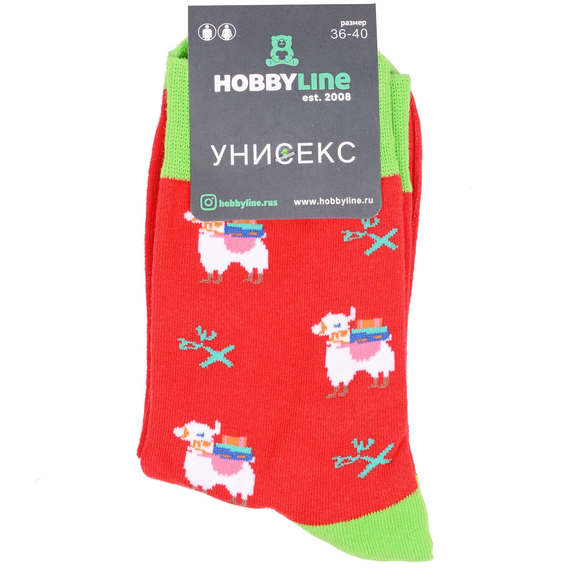 Комплект носков унисекс из 2 пар, круглогодичные, средней длины, цвет красный, повседневные, возможно бесшовные, принт (рисунок): с узором, животные, контрастные пятка/мысок/резинка, состав: 75% хлопок, 23% полиамид, 2% эластан, арт. 2-нус80135-5-18. Производитель «Китай, страна бренда - Россия» под брендом «Hobby line».